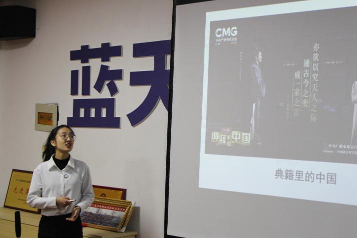 宣講團(tuán)成員郝彤以《堅(jiān)定文化自信》為主題,介紹了在黨的百年發(fā)展歷程中,始終重視黨的文化領(lǐng)導(dǎo)力建設(shè),始終把促進(jìn)文化人才參與作為鞏固和發(fā)展黨的文化領(lǐng)導(dǎo)力的關(guān)鍵。作為新時(shí)代的青年,我們要自信大方的講好中國故事,傳播中國聲音,提升民族文化自信心。