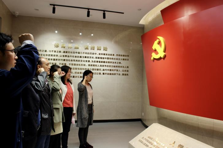 在教育基地,全體黨員干部、教師先后參觀了“德廉之道、貪腐之禍、修身之路”三個(gè)主題展區(qū)。“德廉之道”展區(qū)突出正面引導(dǎo),采用紗幕投影、互動(dòng)多媒體等高科技手段,品悟嶗山源遠(yuǎn)流長的道廉文化。“貪腐之禍”展區(qū)強(qiáng)調(diào)反面震懾,通過一系列發(fā)生在青島市、嶗山區(qū)的典型案例和精簡的VR微電影展現(xiàn)了廉政思想防線堤壩倒塌的嚴(yán)重性,用身邊事教育身邊人,展示了貪污腐敗給黨和國家以及家庭、個(gè)人帶來的危害。“修身之路”與前兩部分緊密呼應(yīng),結(jié)合習(xí)近平總書記重要講話精神,引導(dǎo)黨員干部以“修身養(yǎng)廉、慎終如始”的自覺嚴(yán)律己、走正路。各教研室黨支部同時(shí)舉行了“理想、信念、廉潔、紀(jì)律”的主題黨日活動(dòng)。