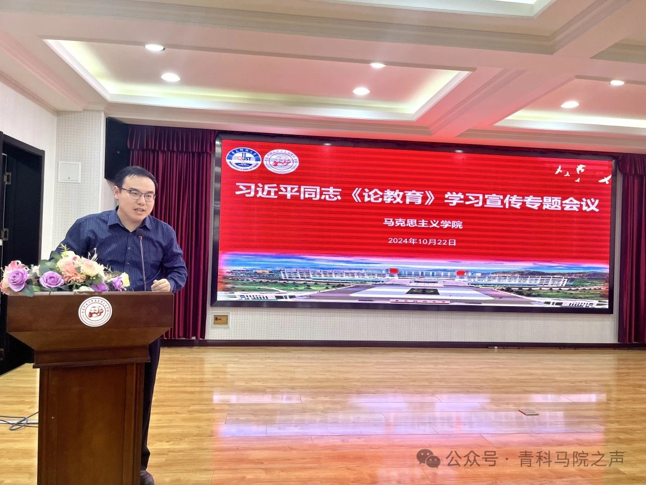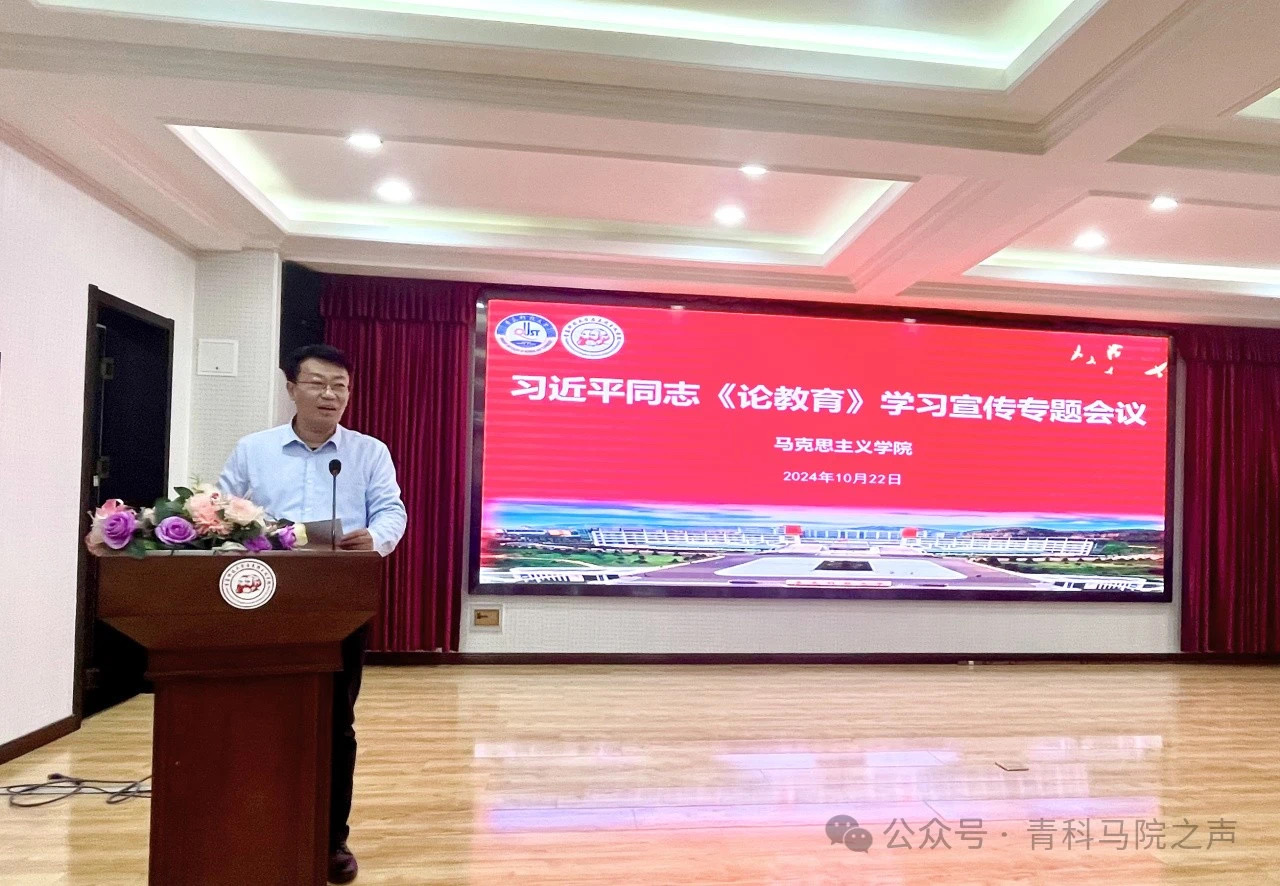 10月22日,馬克思主義學(xué)院于學(xué)術(shù)報(bào)告廳召開(kāi)習(xí)近平同志《論教育》學(xué)習(xí)宣傳專題教育會(huì)議。本次會(huì)議由馬克思主義學(xué)院黨總支書(shū)記李真主持。