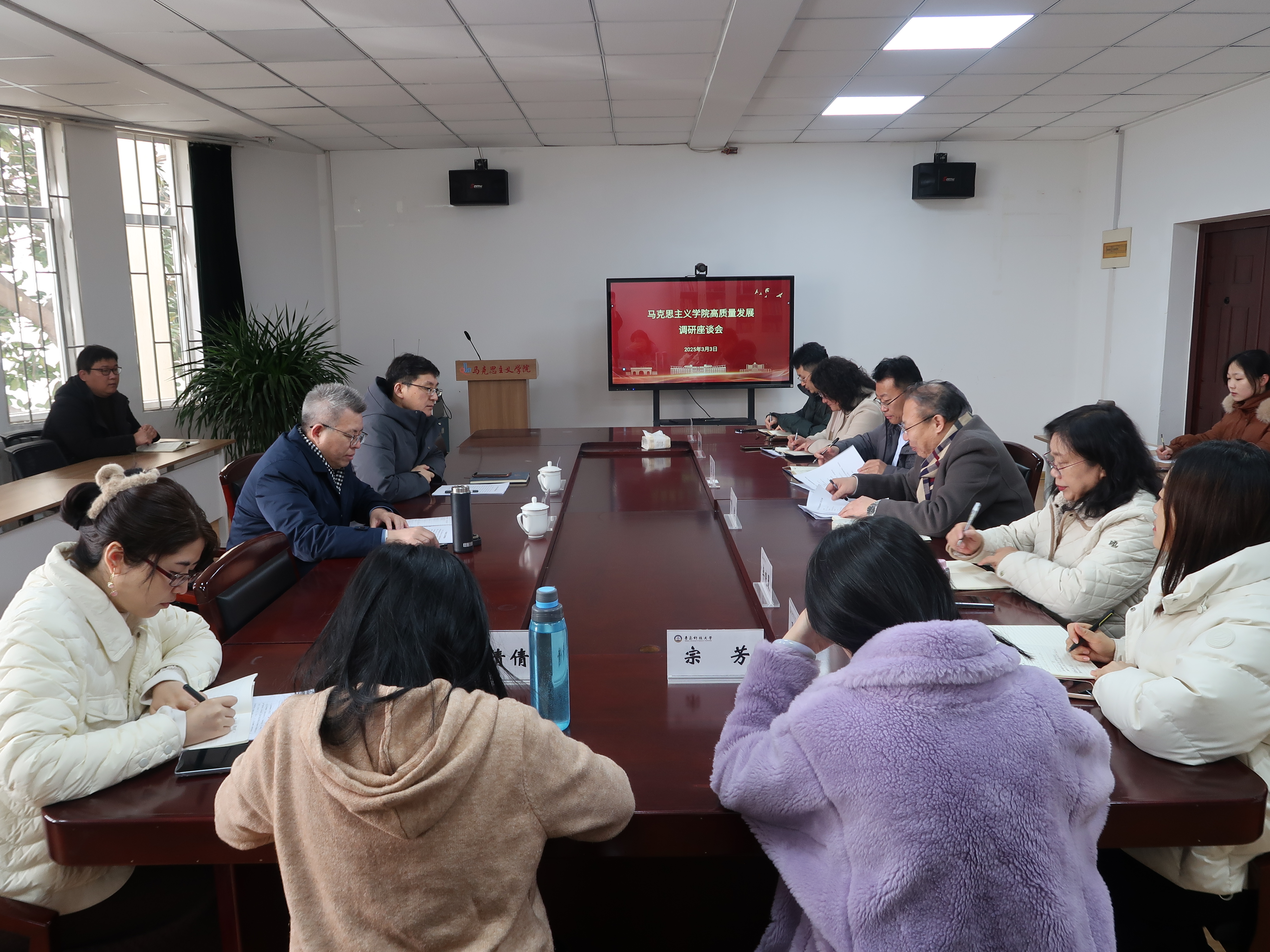 為貫徹落實習近平總書記對思政課建設的重要指示精神,切實推進馬克思主義學院內(nèi)涵式建設和高質(zhì)量發(fā)展,3月3日上午,學校黨委書記楊天梅到學院召開高質(zhì)量發(fā)展調(diào)研座談會,學校黨委(校長)辦公室主任毛常明、副主任王辰及馬克思主義學院領導班子和部分教師代表參加本次座談會,會議由馬克思主義學院黨總支書記李真主持。