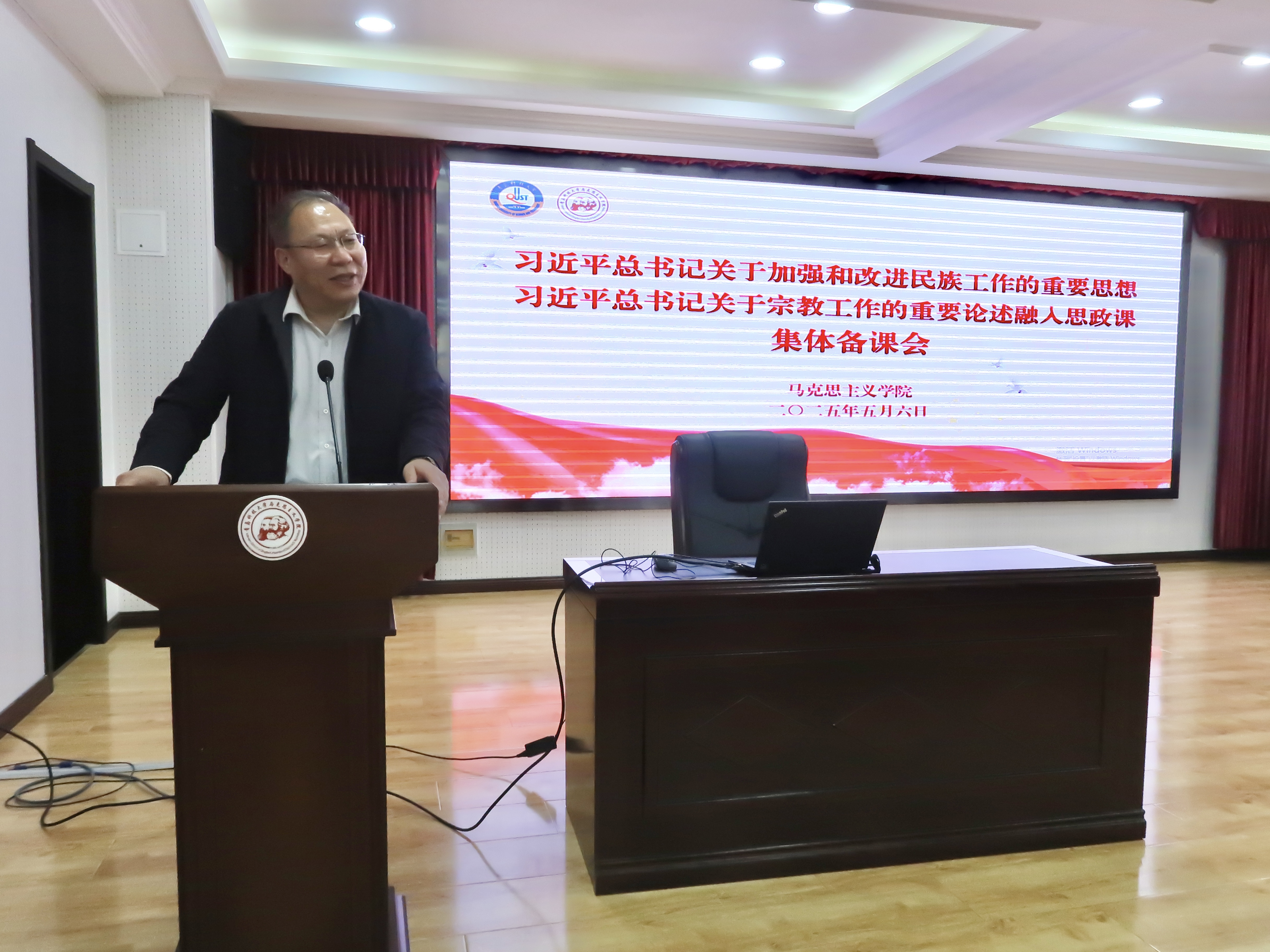 為全面貫徹落實習(xí)近平總書記關(guān)于加強和改進民族工作的重要思想和關(guān)于宗教工作的重要論述,推進新時代思政課改革創(chuàng)新,5月6日下午,馬克思主義學(xué)院于學(xué)術(shù)報告廳開展習(xí)近平總書記關(guān)于加強和改進民族工作的重要思想和關(guān)于宗教工作的重要論述融入思政課集體備課會。青島科技大學(xué)黨委常委、統(tǒng)戰(zhàn)部部長秦姣出席活動,會議由馬克思主義學(xué)院黨總支書記李真主持,學(xué)院全體師生參加此次會議。