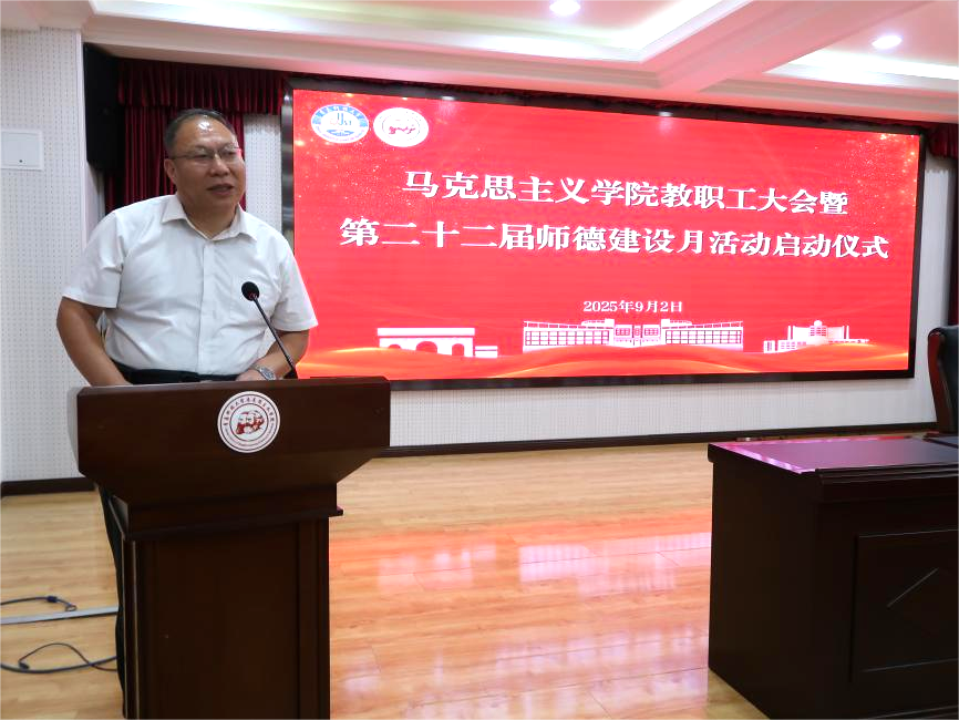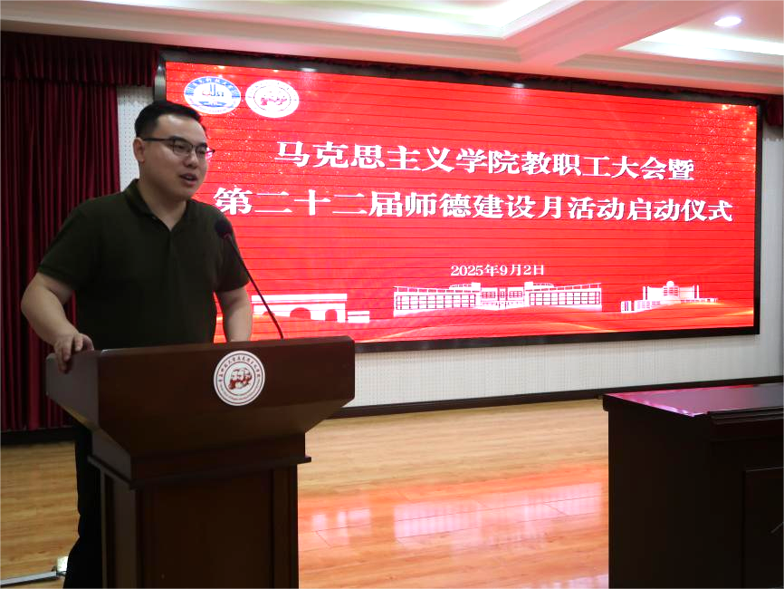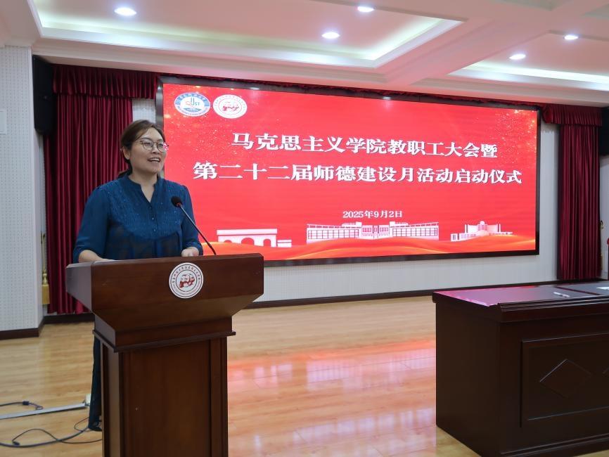 為深入學(xué)習(xí)貫徹黨的創(chuàng)新理論,全面統(tǒng)籌學(xué)院新學(xué)期學(xué)科建設(shè)、教育教學(xué)與人才培養(yǎng)等各項(xiàng)任務(wù),明確工作方向、凝聚發(fā)展共識(shí),確保新學(xué)期各項(xiàng)工作開好局、起好步,9月2日下午,馬克思主義學(xué)院教職工大會(huì)暨第二十二屆師德建設(shè)月啟動(dòng)儀式在學(xué)院報(bào)告廳召開,會(huì)議由學(xué)院黨總支書記李卉主持,學(xué)院全體教職工參加會(huì)議。