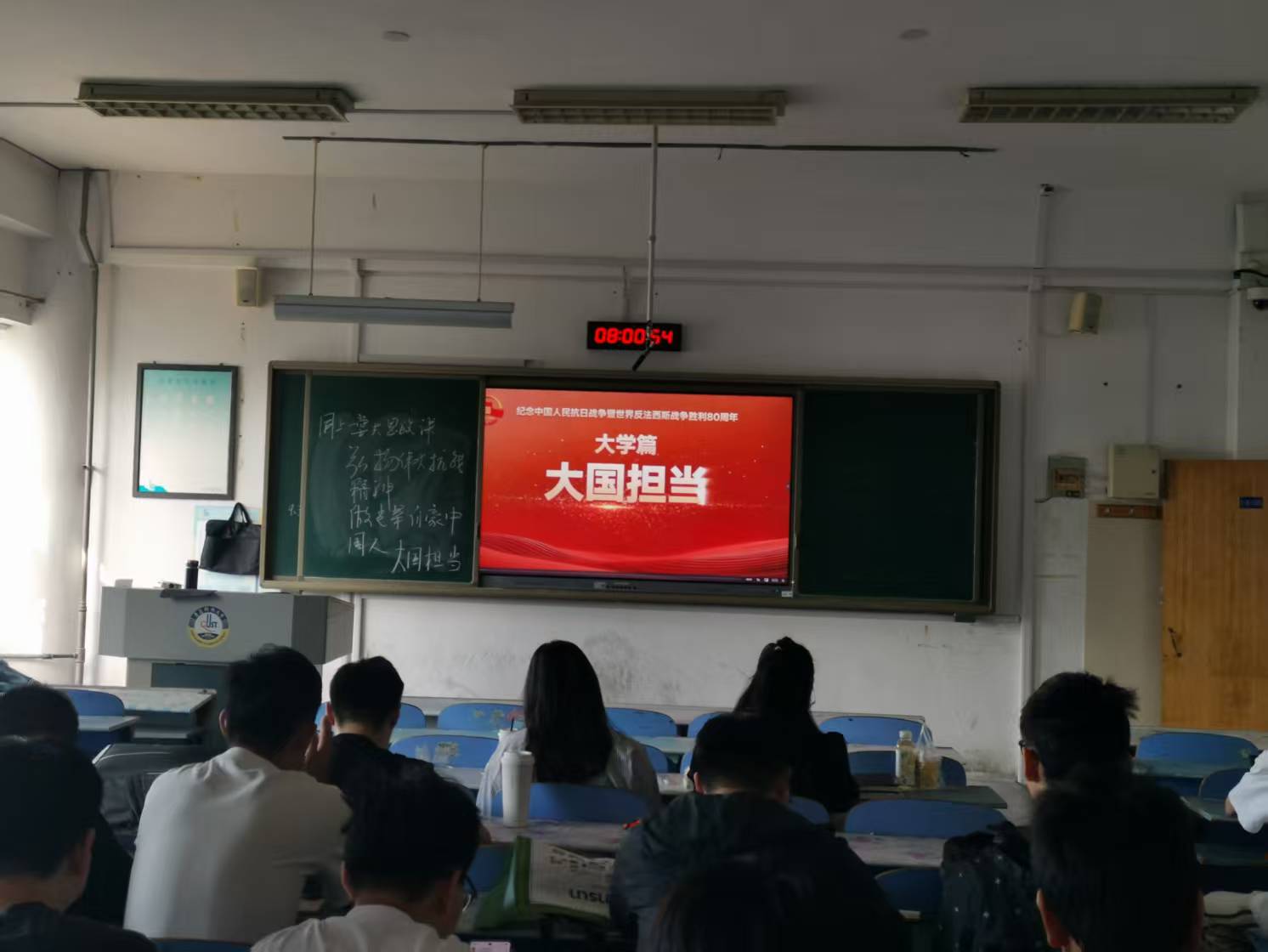 9月18日,為紀念中國人民抗日戰(zhàn)爭暨世界反法西斯戰(zhàn)爭勝利80周年,馬克思主義學院組織學生共同觀看由教育部、中央網(wǎng)信辦、人民日報社、國家文物局聯(lián)合主辦的面向全國大中小學生開講的“弘揚偉大抗戰(zhàn)精神,做光榮自豪中國人”思政大課大學篇:大國擔當。此次活動通過歷史回溯與現(xiàn)實聯(lián)結,為青年學子呈現(xiàn)了一堂深刻而生動的愛國主義教育課。