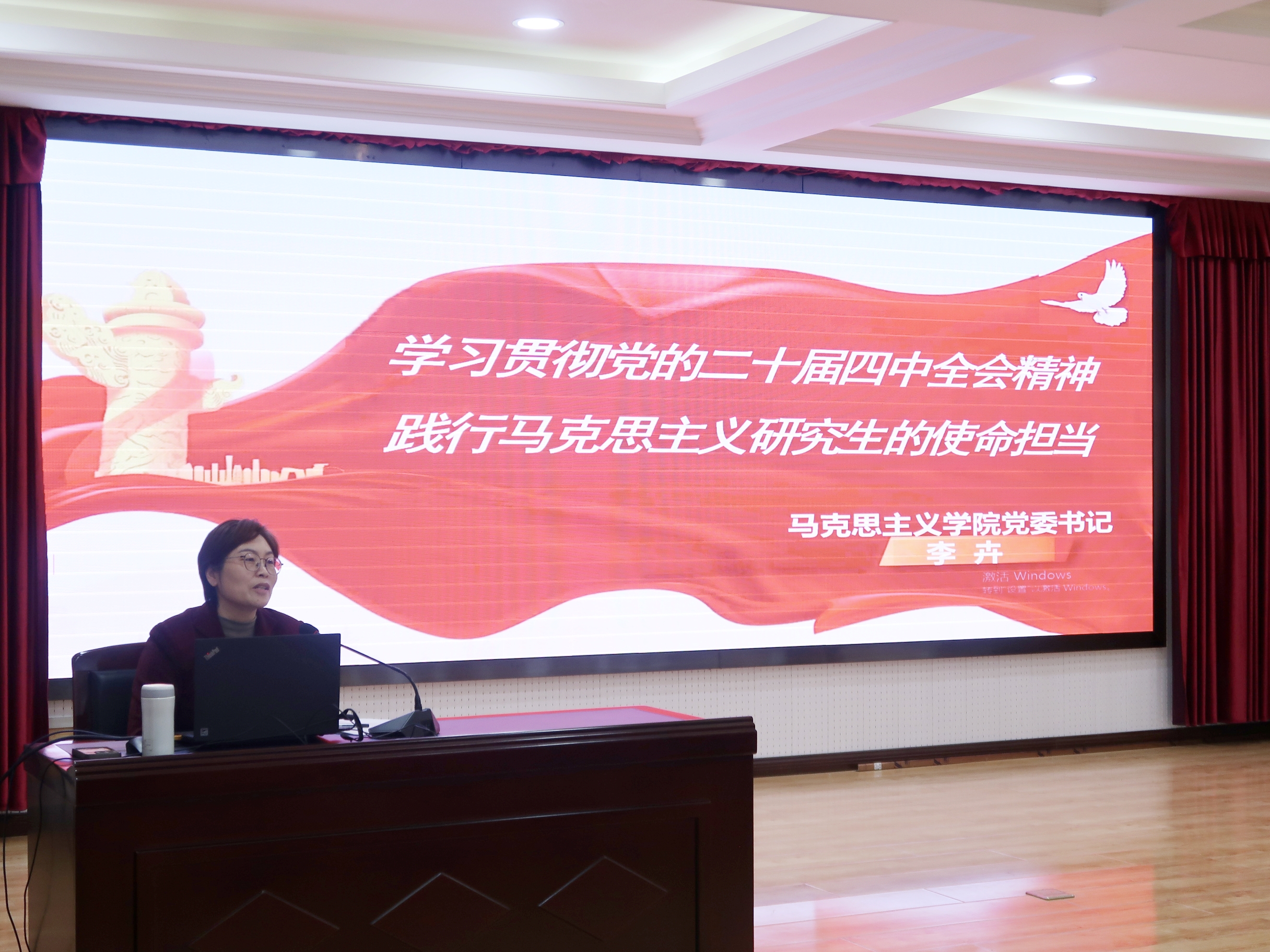 11月12日下午,青島科技大學(xué)馬克思主義學(xué)院黨委書記李卉以《學(xué)習(xí)貫徹黨的二十屆四中全會精神,踐行馬克思主義研究生的使命擔(dān)當(dāng)》為題,為學(xué)院學(xué)生宣講黨的二十屆四中全會精神。馬克思主義學(xué)院全體學(xué)生參加學(xué)習(xí)。