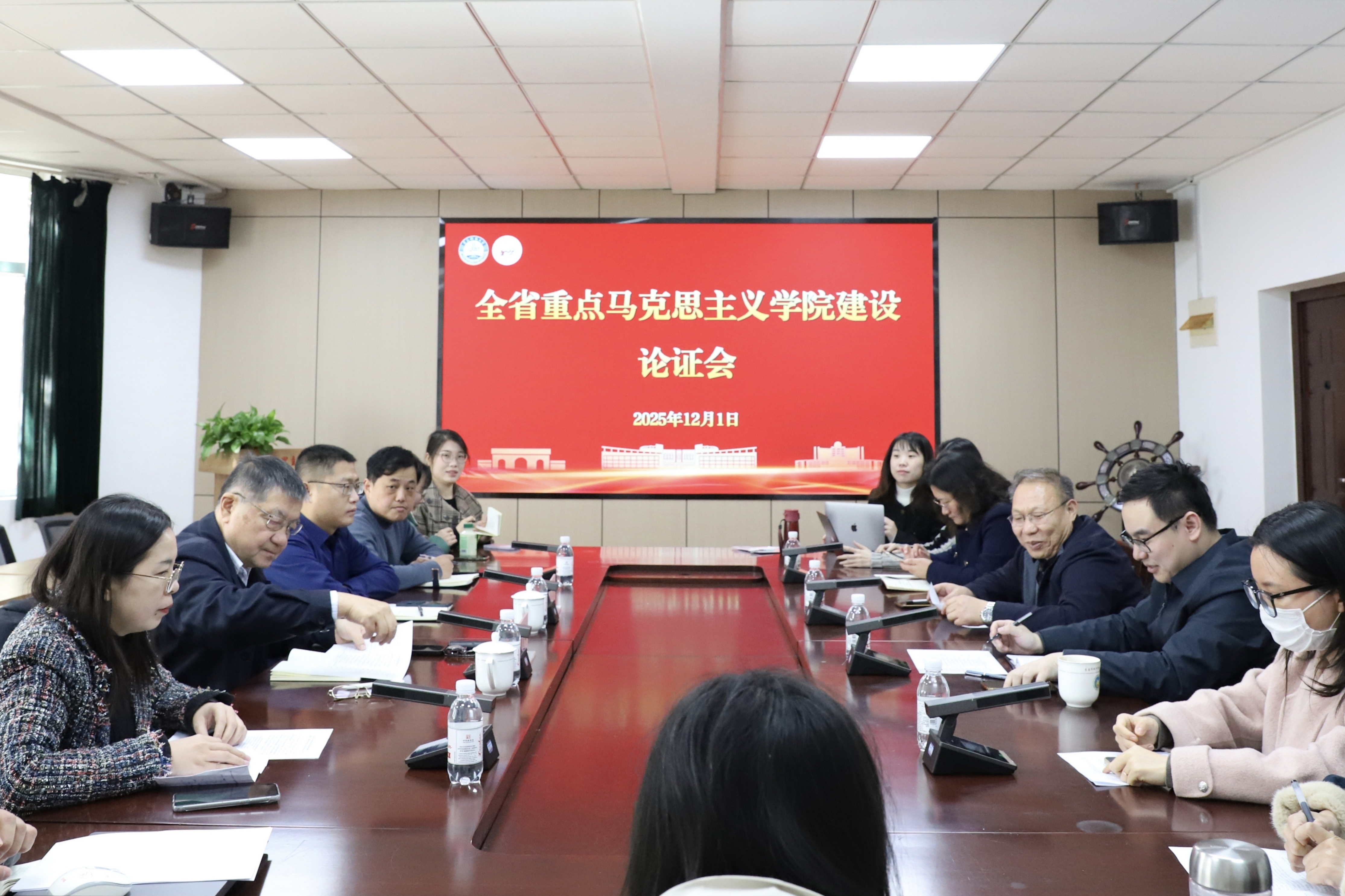 為扎實推進全省重點馬克思主義學(xué)院建設(shè),持續(xù)提升國家社科基金項目申報質(zhì)量與成功率,12月1日上午,馬克思主義學(xué)院于2010會議室召開全省重點馬院建設(shè)論證會暨國家社科基金申報論證會。會議特邀天津大學(xué)學(xué)術(shù)委員會委員、馬克思主義學(xué)院院長、教授顏曉峰,天津大學(xué)馬克思主義學(xué)院助理研究員、碩士生導(dǎo)師王龍騰出席并擔(dān)任評議專家。馬克思主義學(xué)院院長曹勝,副院長王建美、郭江龍,教師代表參加會議,會議由曹勝主持。