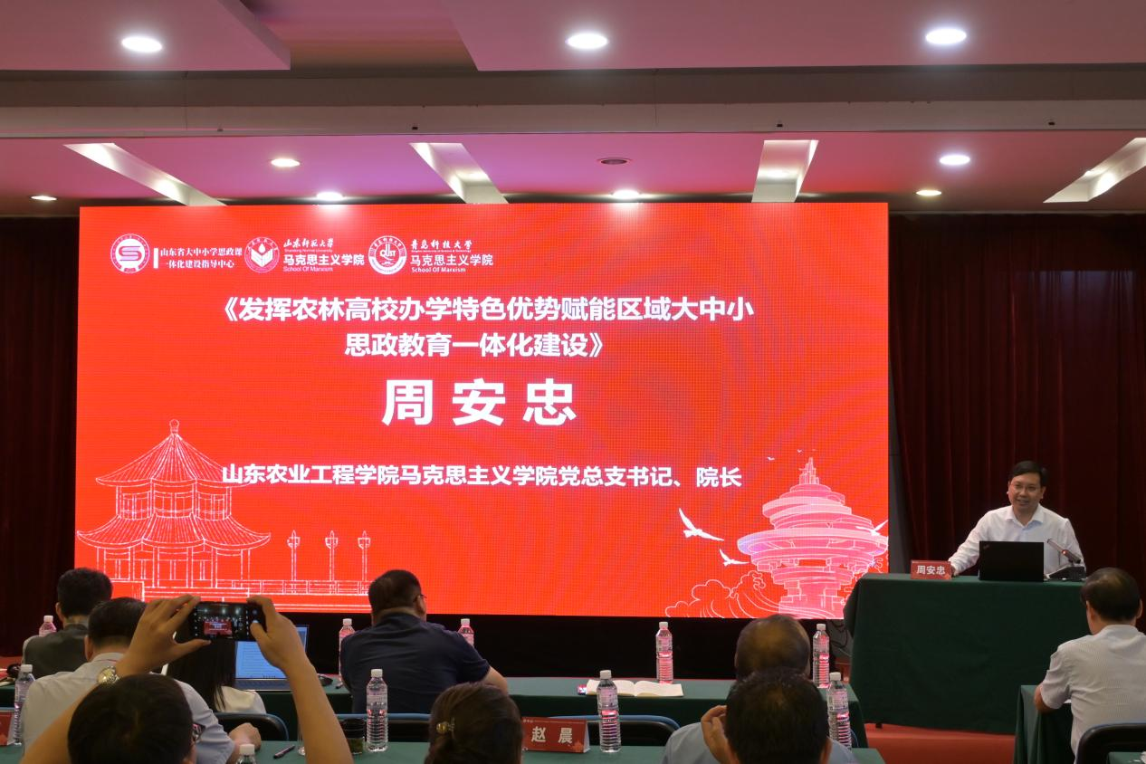 山東農(nóng)業(yè)工程學(xué)院馬克思主義學(xué)院院長、黨總支書記周安忠以《發(fā)揮農(nóng)林高校辦學(xué)特色優(yōu)勢賦能區(qū)域大中小思政教育一體化建設(shè)》為題發(fā)言