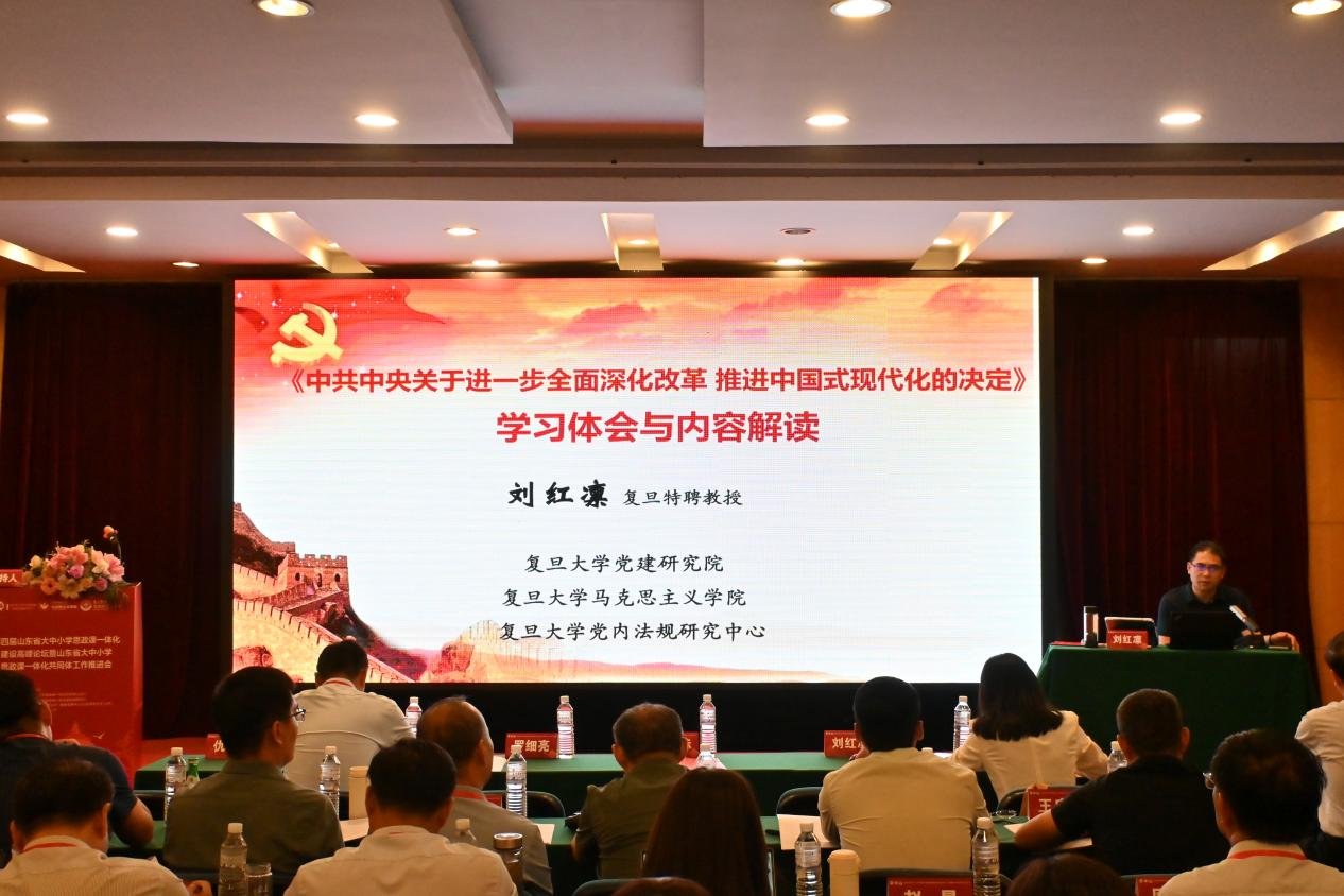 復(fù)旦大學(xué)特聘教授、黨建研究院院長、黨內(nèi)法規(guī)研究中心主任、國務(wù)院學(xué)科評議組成員、教育部“長江學(xué)者”特聘教授、2014年全國文化名家暨“四個一批”人才劉紅凜圍繞《中共中央關(guān)于進一步全面深化改革推進中國式現(xiàn)代化的決定》作主題報告
