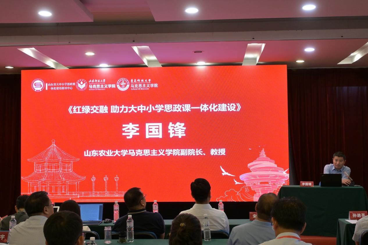 山東農(nóng)業(yè)大學(xué)馬克思主義學(xué)院副院長李國鋒教授以《紅綠交融助力大中小學(xué)思政課一體化建設(shè)》為題發(fā)言