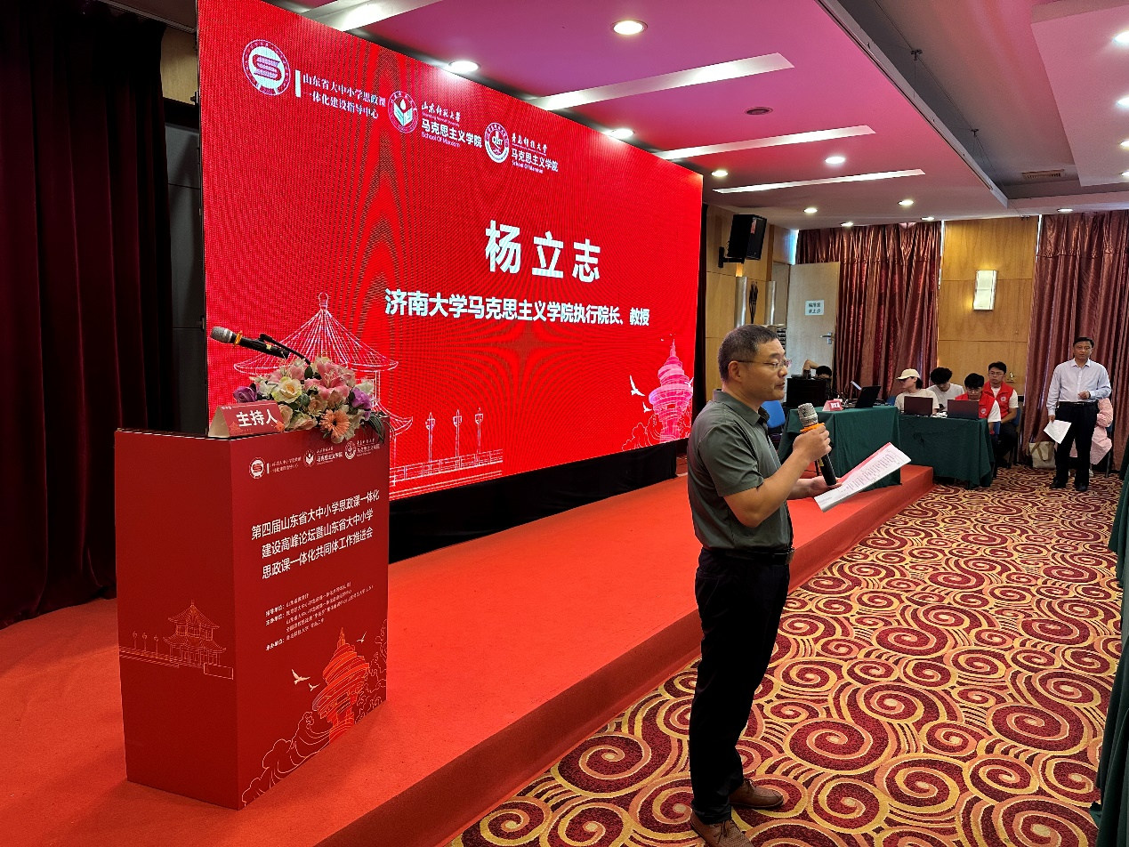 共同體中小學(xué)成員單位代表發(fā)言環(huán)節(jié)由濟南大學(xué)馬克思主義學(xué)院執(zhí)行院長、山東省學(xué)校思政課教指委分教指委委員楊立志教授主持