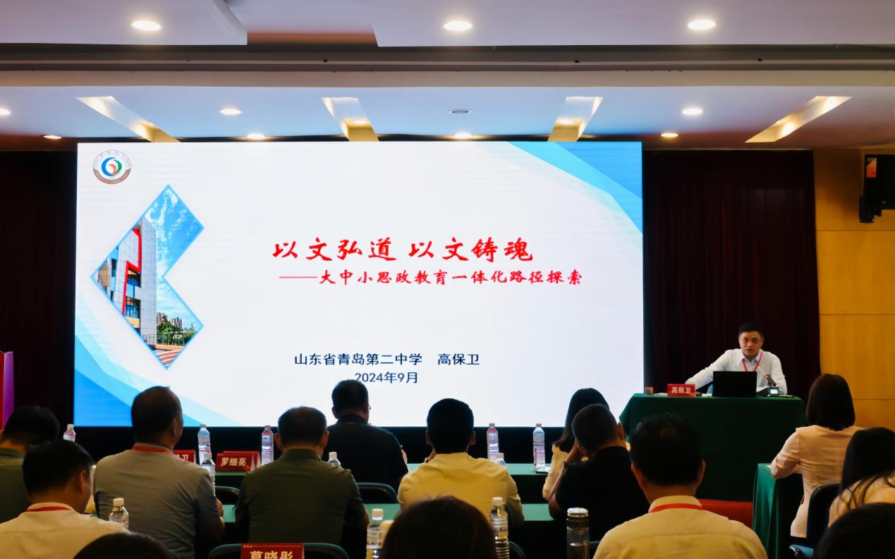 教育部大中小學(xué)思政課一體化建設(shè)專家指導(dǎo)組成員、青島二中思政課特級教師、正高級教師、全國思想政治理論課座談會參會代表、國家級教學(xué)名師、全國優(yōu)秀教師代表座談會代表、全國模范教師、全國中小學(xué)優(yōu)秀德育工作者、首批齊魯教育名家、山東省特級教師、齊魯名師、山東省學(xué)校思政課教師年度人物高保衛(wèi)圍繞《以文弘道以文鑄魂——大中小思政化教育實施路徑的探索》作主題報告