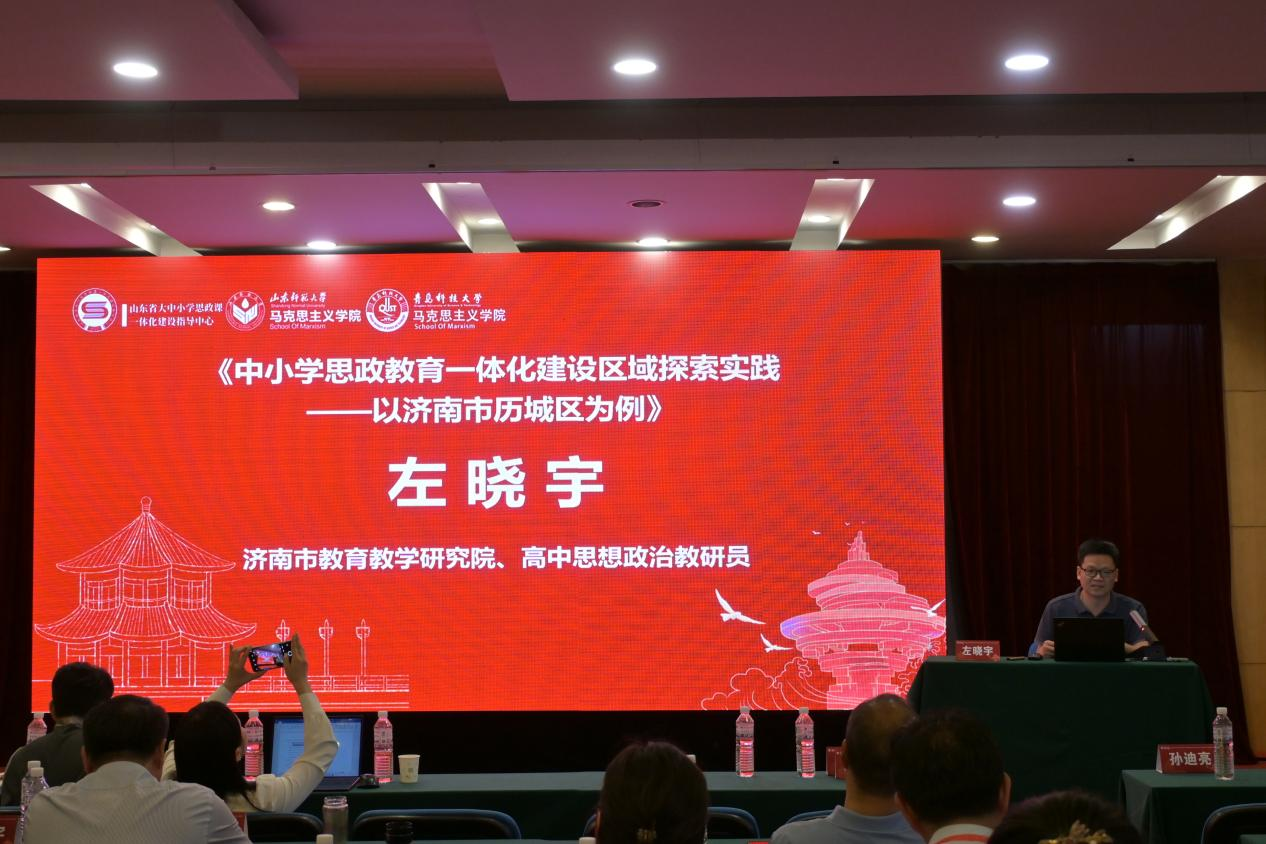 濟南市教育教學(xué)研究院、高中思想政治教研員左曉宇以《中小學(xué)思政教育一體化建設(shè)區(qū)域探索實踐——以濟南市歷城區(qū)為例》為題發(fā)言