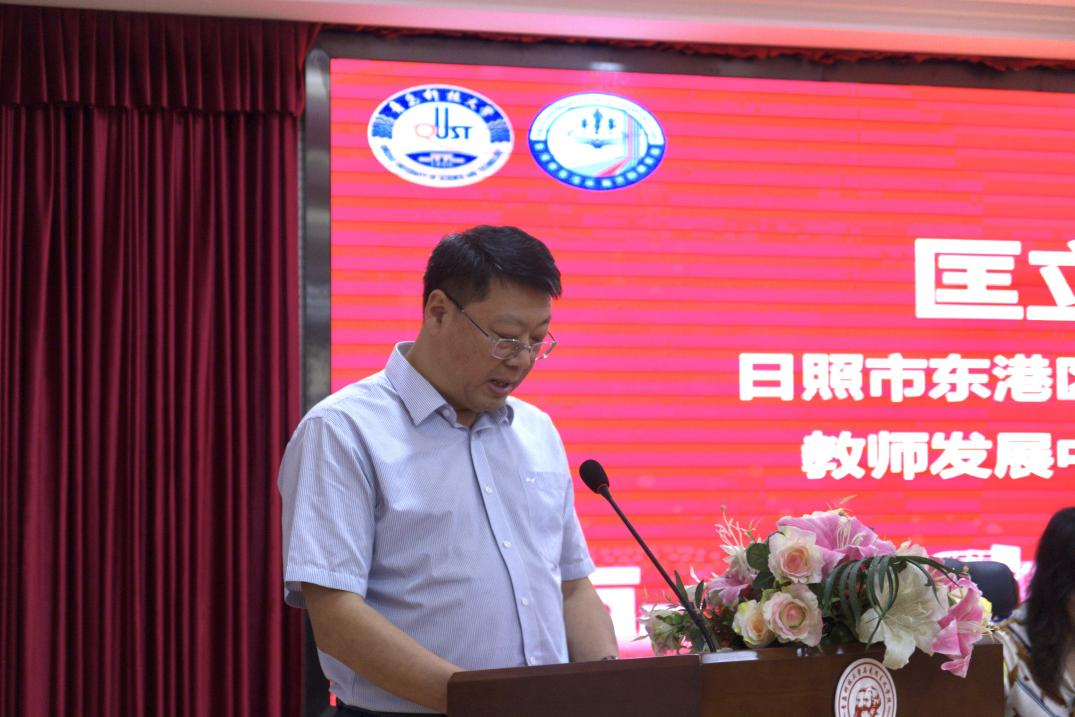 儀式第一項(xiàng),馬克思主義學(xué)院黨總支書(shū)記李真對(duì)出席此次骨干教師培訓(xùn)班的老師表示熱烈的歡迎,并對(duì)長(zhǎng)期以來(lái)關(guān)心支持我校思想政治理論課教學(xué)改革發(fā)展的東港區(qū)教體局致以誠(chéng)摯謝意。他強(qiáng)調(diào),自2021年雙方攜手啟動(dòng)“雙協(xié)同、雙提升”項(xiàng)目以來(lái),共同推進(jìn)的大中小學(xué)思政課一體化建設(shè)已取得了顯著的成效。本次培訓(xùn)也是在雙方的協(xié)同努力下舉辦,注重詮釋大思政的核心內(nèi)涵,培訓(xùn)內(nèi)容豐富,形式多樣,旨在拓寬視野,增長(zhǎng)才干,全面提高大家的綜合能力和業(yè)務(wù)水平。希望大家將本次學(xué)習(xí)的成果轉(zhuǎn)化為今后工作思路和舉措,不斷增強(qiáng)道德與法治課的思想性、理論性、針對(duì)性和親和力,真正把立德樹(shù)人的根本任務(wù)抓好抓實(shí)抓到位。