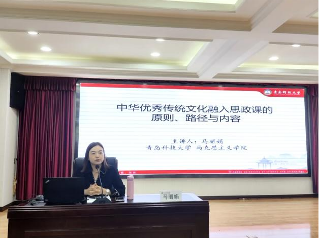 繼開(kāi)班儀式后,青島科技大學(xué)思想道德與法治教研室黨支部書(shū)記馬麗娟為學(xué)員們開(kāi)展精彩生動(dòng)的《中華優(yōu)秀傳統(tǒng)文化融入思政課》專(zhuān)題教學(xué)。馬麗娟強(qiáng)調(diào),中華優(yōu)秀傳統(tǒng)文化的深厚底蘊(yùn)為思政教育提供了豐富多樣的素材,在思政教育中融入中華優(yōu)秀傳統(tǒng)文化,能夠豐富教學(xué)內(nèi)容、堅(jiān)定學(xué)生的文化自信,喚醒深藏在學(xué)生內(nèi)心深處的精神基因,鑄牢中華民族共同體意識(shí)和家國(guó)情懷。思想道德與法治課老師要找好中華優(yōu)秀傳統(tǒng)文化與道德與法治課融合的有效切入點(diǎn),整合資源構(gòu)建多層次的課程體系,實(shí)現(xiàn)知識(shí)傳授與價(jià)值引領(lǐng)的有機(jī)結(jié)合,確保思政教育取得良好效果。