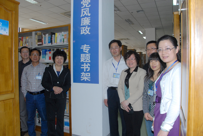 5月14日上午,黨風(fēng)廉政專題書架揭牌儀式在圖書館綜合書庫舉行,黨委副書記、紀(jì)委書記王瑞芳出席儀式并講話,紀(jì)委監(jiān)察室、組織部、宣傳部、圖書館負(fù)責(zé)人及圖書館部分教職工參加了儀式。