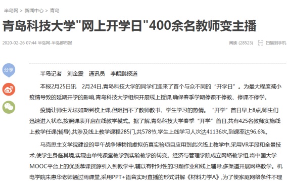 2月24日,青島科技大學的同學們迎來了首個與眾不同的“開學日”。為最大程度減小疫情導致的延期開學的影響,青島科技大學組織開展線上授課,確保春季學期停課不停教、停課不停學。