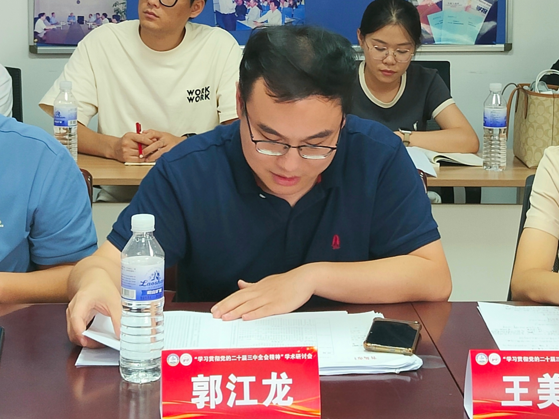 為學(xué)習(xí)貫徹黨的二十屆三中全會(huì)精神,深入研討全會(huì)精神的核心要義、豐富內(nèi)涵和實(shí)踐要求,8月10日,“學(xué)習(xí)貫徹黨的二十屆三中全會(huì)精神”學(xué)術(shù)研討會(huì)暨學(xué)科建設(shè)論證會(huì)于青島科技大學(xué)召開(kāi)。中國(guó)政治學(xué)會(huì)常務(wù)理事、青島市政治學(xué)會(huì)會(huì)長(zhǎng)、青島市統(tǒng)戰(zhàn)部原一級(jí)巡視員王振海,山東省學(xué)校思政課教指委“思想道德與法治”分教指委主任委員、中國(guó)石油大學(xué)(華東)馬克思主義學(xué)院院長(zhǎng)張瑞濤,青島科技大學(xué)黨委常委、宣傳部部長(zhǎng)張洪坤出席開(kāi)幕式致辭。青島科技大學(xué)馬克思主義學(xué)院黨總支書(shū)記李真主持開(kāi)幕式。