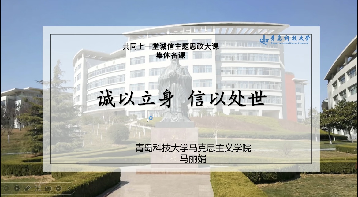 青島科技大學(xué)馬克思主義學(xué)院思想道德與法治教研室黨支部書記馬麗娟進(jìn)行大學(xué)階段備課分享《誠以立身信以處世》,著重從誠信之本、誠信之脈、失信之痛、誠信之道等方面展開,注重馬克思主義理論與中國傳統(tǒng)誠信文化相結(jié)合,增強(qiáng)課堂吸引力和文化凝聚力,更好地發(fā)揮思政課程的立德樹人的根本任務(wù),讓誠信之花悄然綻放。