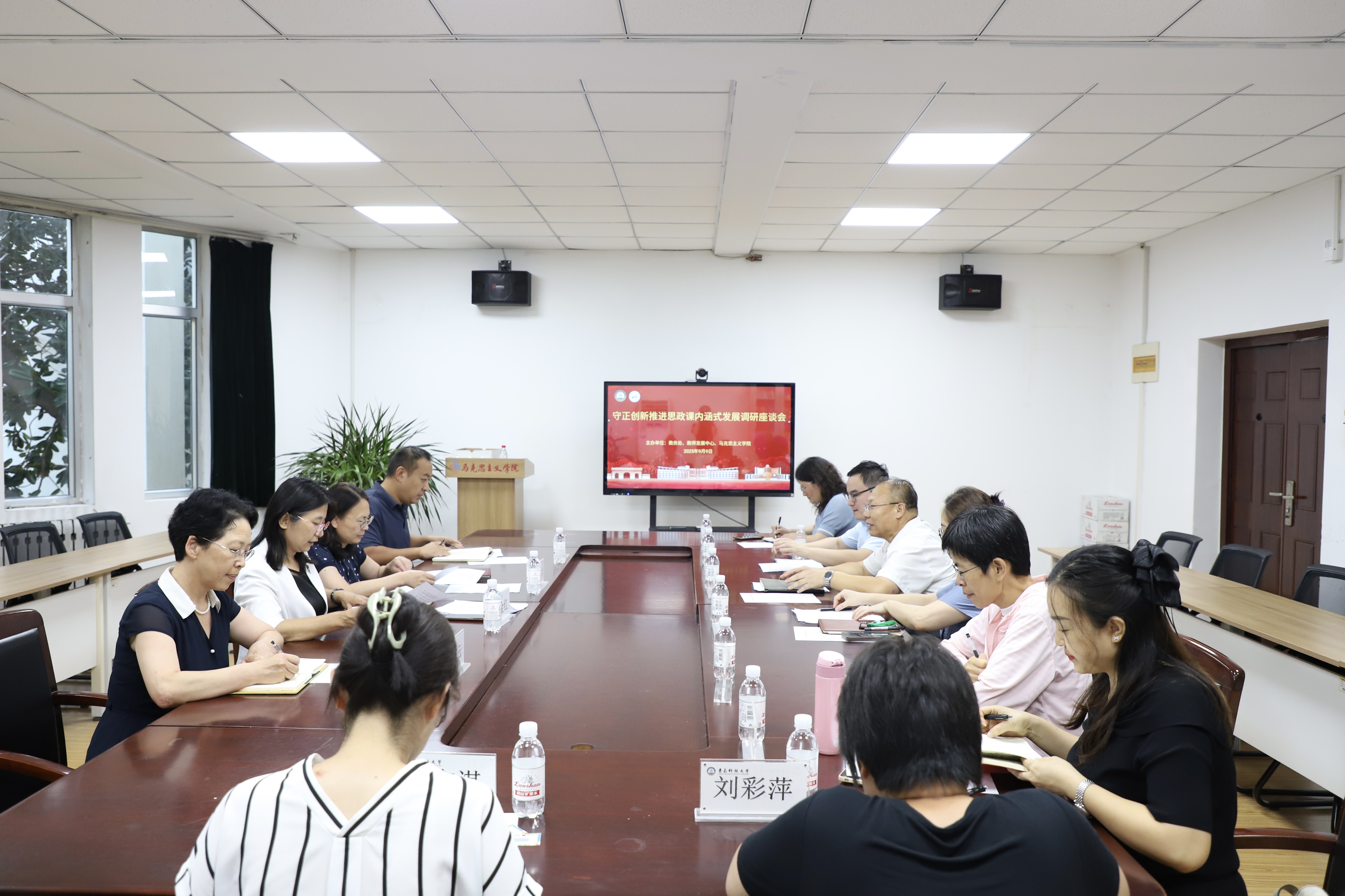 9月9日,“守正創(chuàng)新推進(jìn)思政課內(nèi)涵式發(fā)展”調(diào)研座談會(huì)在馬克思主義學(xué)院2010會(huì)議室召開(kāi)。青島科技大學(xué)副校長(zhǎng)李金紅,教務(wù)處處長(zhǎng)、教學(xué)質(zhì)量管理辦公室(教師教學(xué)發(fā)展中心)主任馬翠萍,教學(xué)質(zhì)量管理辦公室(教師教學(xué)發(fā)展中心)副主任王許云,教師發(fā)展中心教師教學(xué)發(fā)展科科長(zhǎng),學(xué)院黨政領(lǐng)導(dǎo)班子、思政課教師代表參加會(huì)議。會(huì)議教學(xué)處、教學(xué)質(zhì)量管理辦公室(教師教學(xué)發(fā)展中心)、馬克思主義學(xué)院聯(lián)合舉辦,馬翠萍主持。