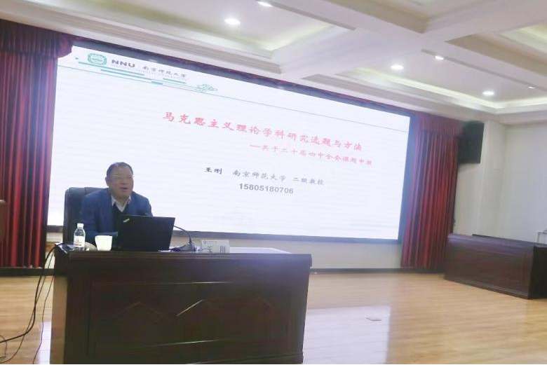 王剛以黨的二十屆四中全會(huì)精神為理論指引,緊密結(jié)合新時(shí)代馬克思主義理論學(xué)科發(fā)展的時(shí)代要求,圍繞“十五五”規(guī)劃建議中的核心議題展開系統(tǒng)解讀。他從六個(gè)方面、五個(gè)領(lǐng)域,層層深入剖析了當(dāng)下馬克思主義理論學(xué)科的研究熱點(diǎn)與選題路徑,同時(shí),針對(duì)選題方法等師生普遍關(guān)注的問題,結(jié)合自身案例進(jìn)行生動(dòng)細(xì)致地講解。