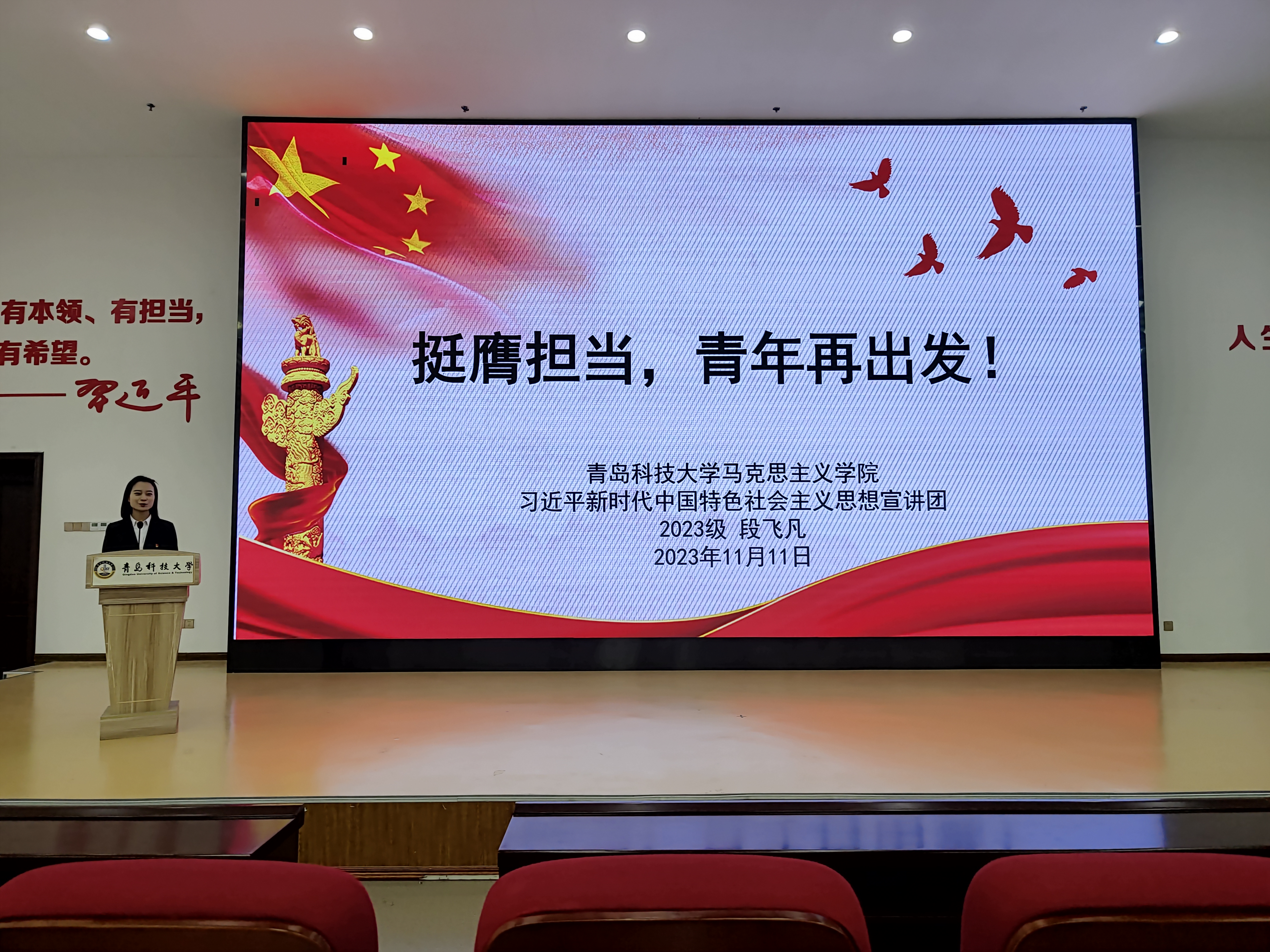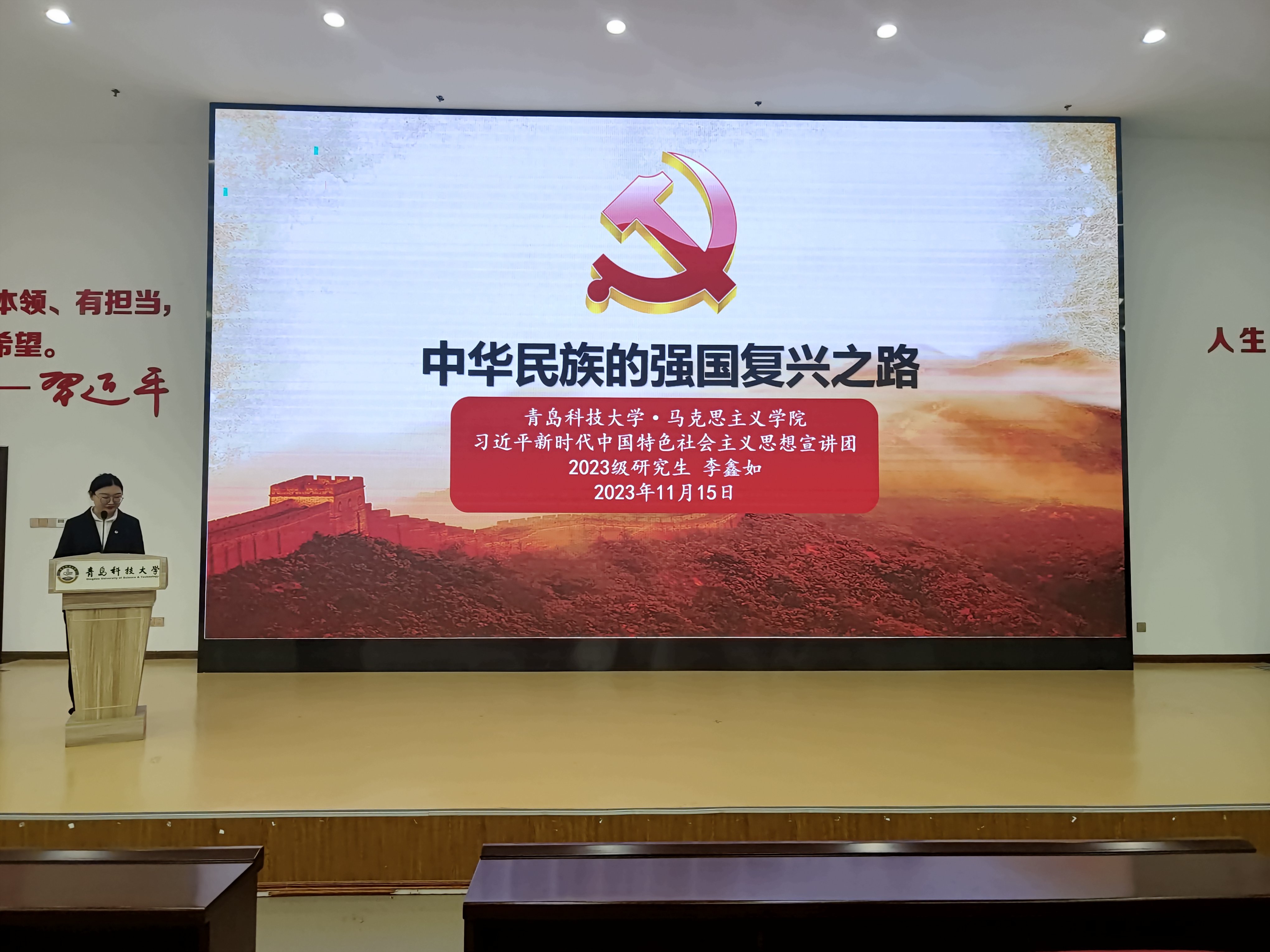 為進一步提升青島科技大學(xué)學(xué)生骨干的綜合素質(zhì)和責(zé)任意識,引導(dǎo)廣大學(xué)生骨干踔厲奮發(fā),勇毅前行,11月11日下午,馬克思主義學(xué)院習(xí)近平新時代中國特色社會主義思想宣講團走進青島科技大學(xué)校研究生會和校學(xué)生會,在北苑報告廳開展青島科技大學(xué)團員和青年主題教育學(xué)習(xí)會的宣講活動。青島科技大學(xué)校研究生會、校學(xué)生會、各學(xué)院研究生會及馬克思主義學(xué)院習(xí)近平新時代中國特色社會主義思想宣講團參加此次活動。