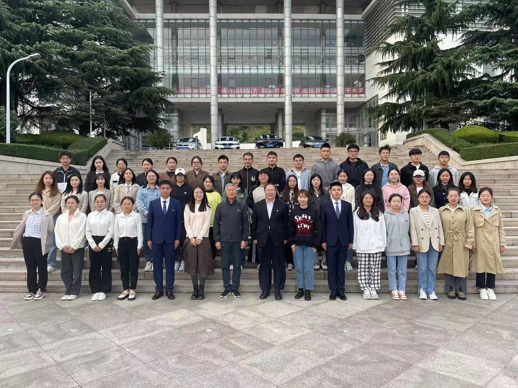 張鳴、曹勝、車舒雨與第十四屆研究生會(huì)骨干成員、第十五屆研究生會(huì)全體成員合影。