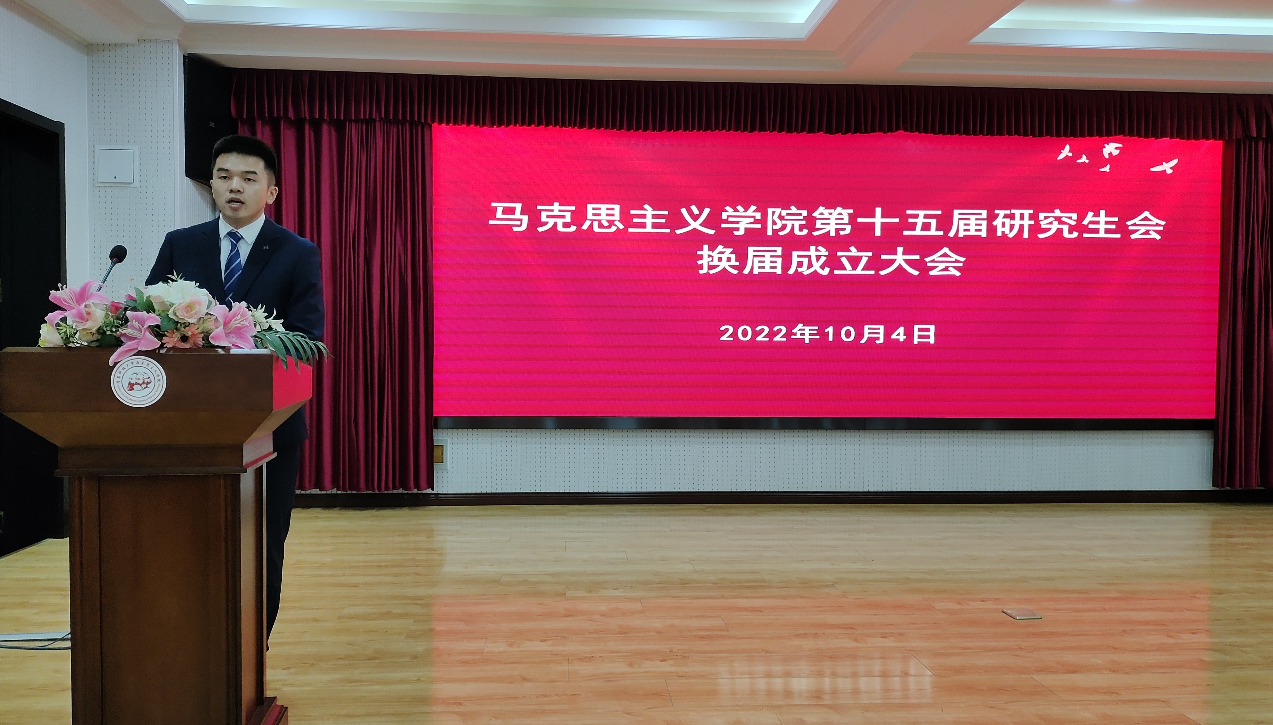 10月4日下午,馬克思主義學(xué)院在學(xué)院報(bào)告廳舉行第十五屆研究生會(huì)換屆成立大會(huì)。馬克思主義學(xué)院黨總支書記張鳴,院長(zhǎng)兼黨總支副書記曹勝,2022級(jí)班主任車舒雨,學(xué)院團(tuán)總支書記李瑩蔚,第十四屆研究生會(huì)骨干成員、第十五屆研究生會(huì)全體成員參加會(huì)議。本次會(huì)議由2022級(jí)研究生李婷婷主持。