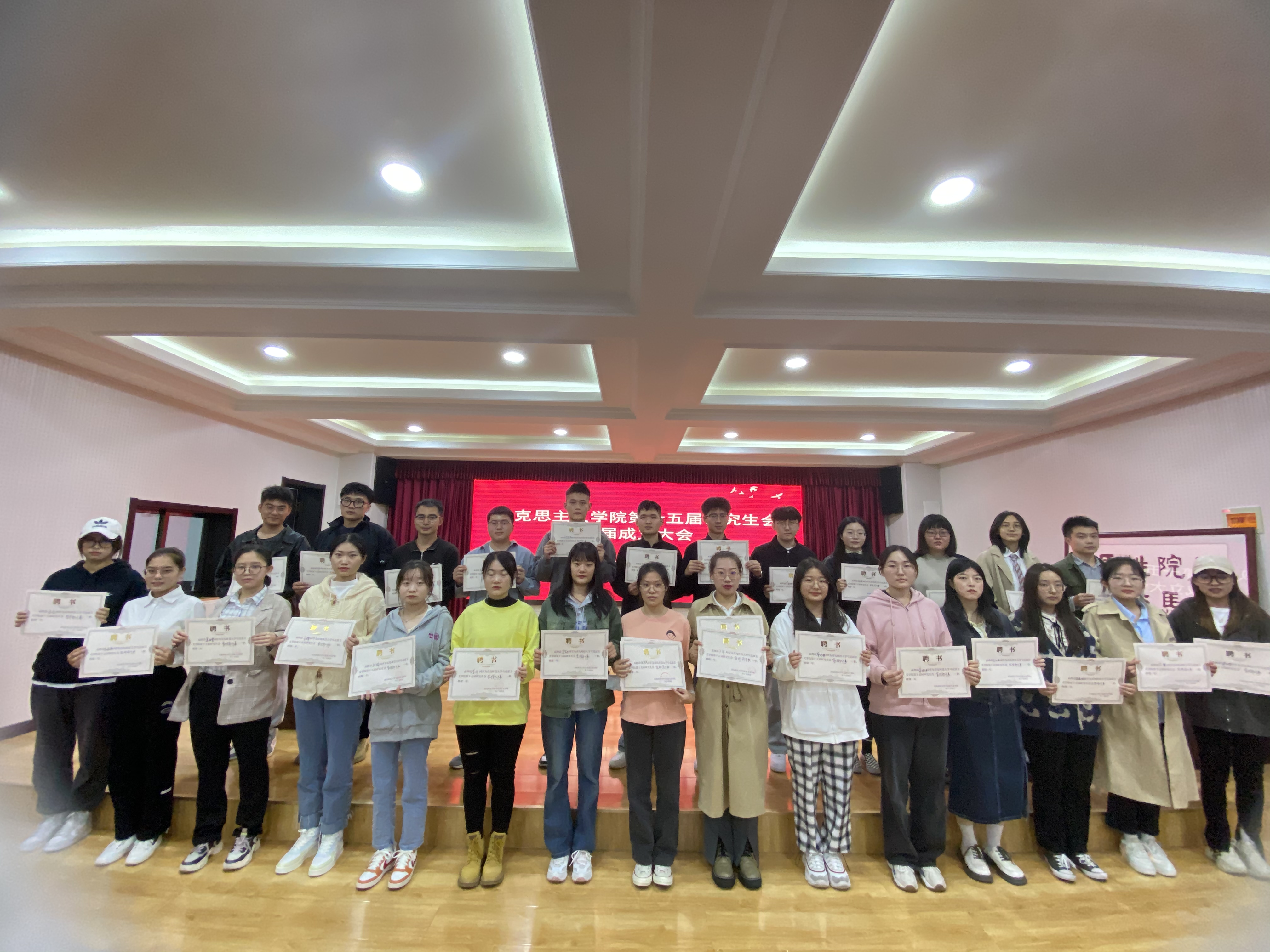 馬克思主義學(xué)院黨總支書記張鳴、院長(zhǎng)曹勝為第十五屆研究生會(huì)全體成員頒發(fā)聘書。