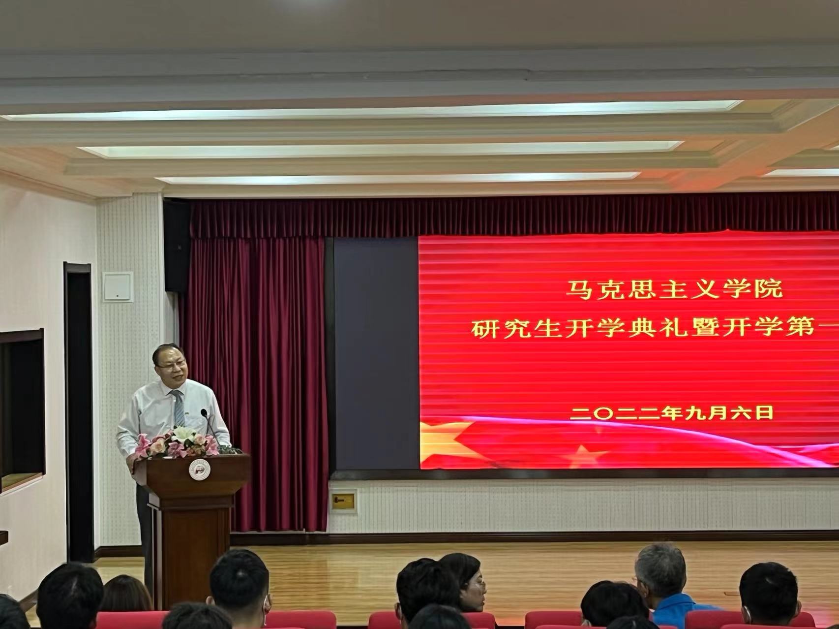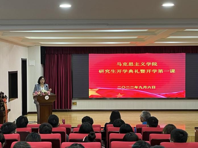 2022年9月6日下午,馬克思主義學院在學術(shù)報告廳舉行2022級研究生開學典禮暨開學第一課。學院黨總支書記張鳴,院長曹勝,副院長曲慧敏,導師代表李曉晨教授,21級研究生班主任潘妍妍教授,教學秘書車舒雨老師及全體在校研究生參加了此次活動。本次會議由曲慧敏主持。