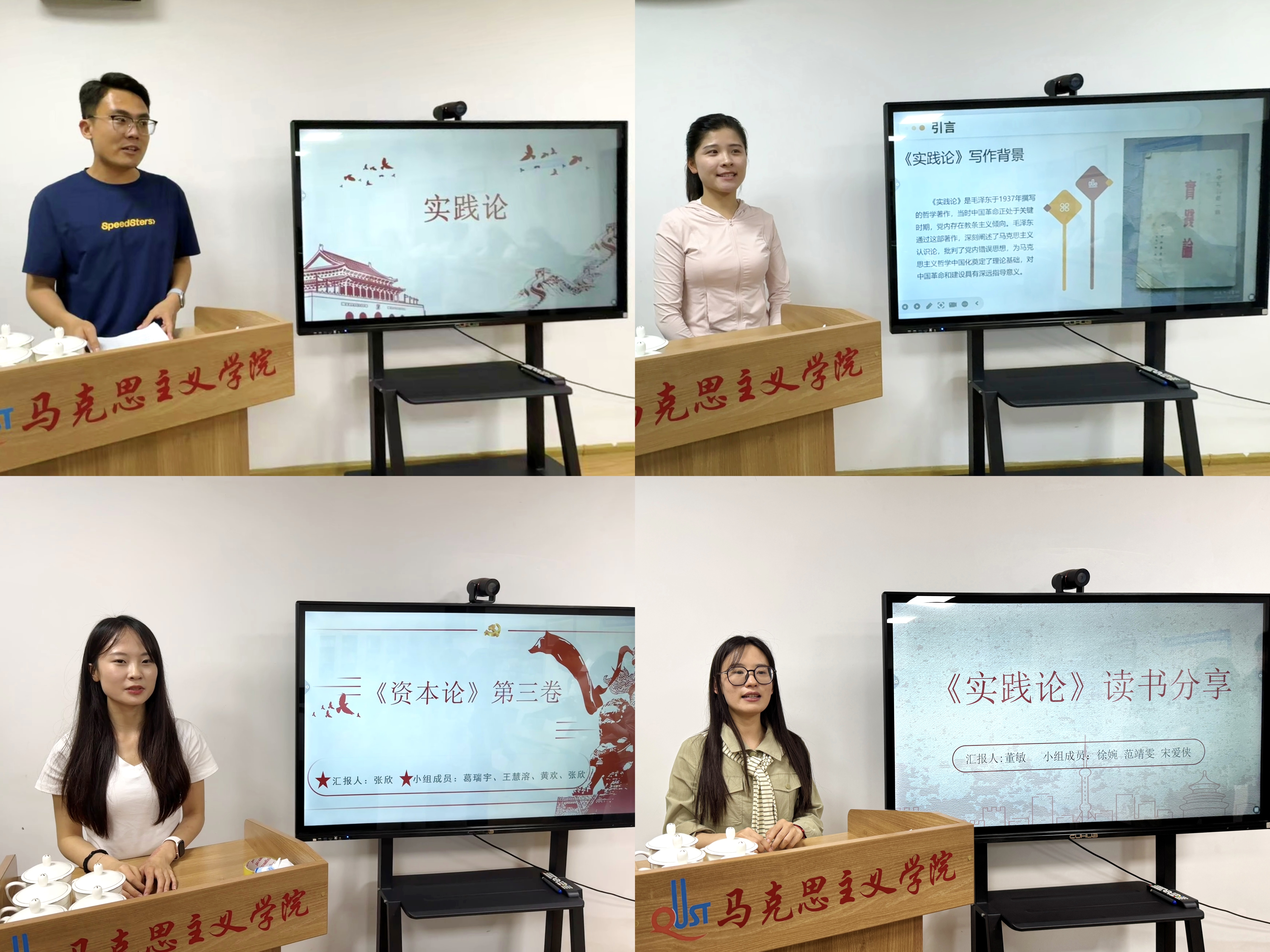 讀書會上,董海龍、莊佳欣、張欣、董敏四位同學(xué)多視角圍繞《實踐論》《資本論》兩本著作進行分享和交流。重點討論了實踐與認識的辯證關(guān)系、認識過程的反復(fù)性與無限性、剩余價值理論對理解資本主義經(jīng)濟本質(zhì)的啟示等問題。分享結(jié)束后,小組討論熱烈,同學(xué)們圍繞核心觀點、現(xiàn)實啟示等深入交流,思想碰撞不斷。單森老師針對討論中的困惑,結(jié)合著作背景與邏輯,進行專業(yè)解讀與點評,為同學(xué)們答疑解惑。