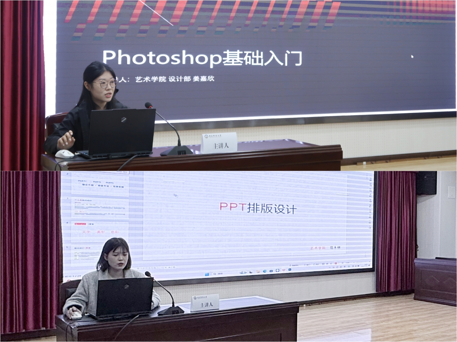 在技能培訓環(huán)節(jié),姜嘉欣講解了PS軟件基礎操作與信息可視化技巧,強調(diào)設計過程中實用性與可讀性的統(tǒng)一。范木林介紹了即夢AI圖像生成工具,并現(xiàn)場演示了“描述—選模型—生成”的基本操作流程,助力同學們更好地掌握AI制圖技能,提升視覺設計與創(chuàng)意表達能力。