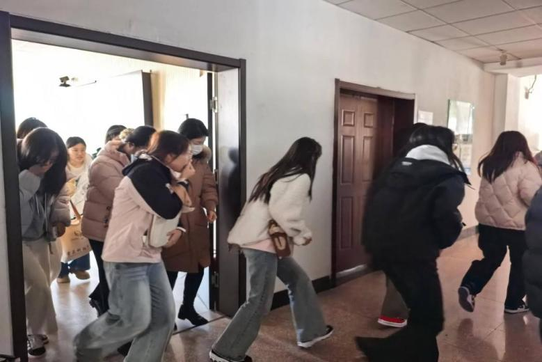 隨著模擬火災(zāi)警報(bào)信號響起,演練正式啟動。全體學(xué)生按照預(yù)設(shè)疏散路線,彎腰低姿、捂住口鼻,在工作人員的有序引導(dǎo)下快速撤離至指定安全區(qū)域。整個(gè)疏散過程緊張有序、銜接順暢。