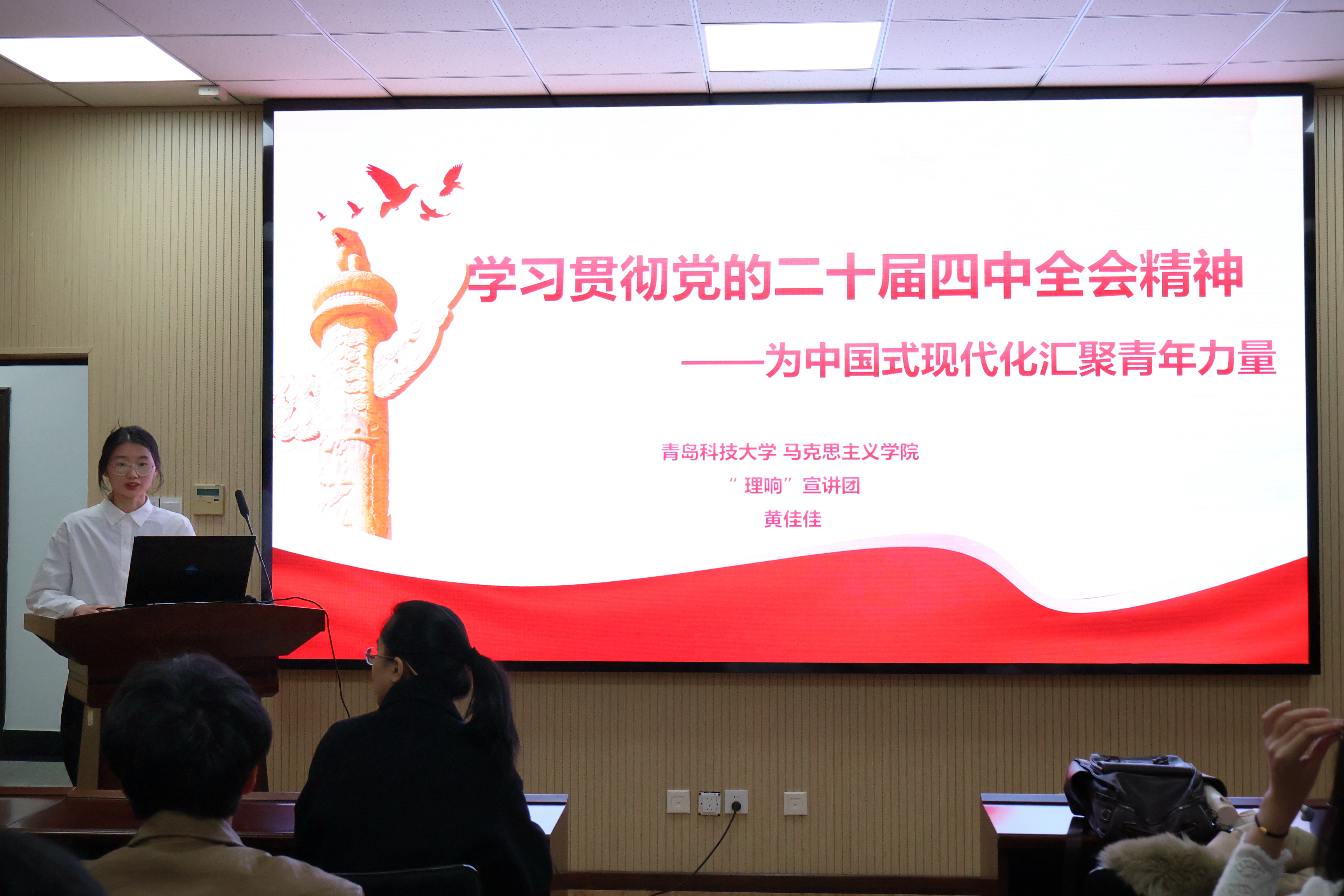“理響”宣講團(tuán)成員黃佳佳、賈夢路在數(shù)據(jù)科學(xué)學(xué)院作學(xué)習(xí)貫徹黨的二十屆四中全會精神主題宣講。黃佳佳回顧了“十四五”時(shí)期我國在經(jīng)濟(jì)發(fā)展、創(chuàng)新驅(qū)動(dòng)等多方面取得的重大成就,深刻闡釋了黨中央關(guān)于國內(nèi)外形勢的基本判斷以及“十五五”時(shí)期經(jīng)濟(jì)社會發(fā)展的指導(dǎo)思想、主要目標(biāo)、重大原則和重要部署,并號召大家以歷史主動(dòng)精神應(yīng)對風(fēng)險(xiǎn)挑戰(zhàn),共同開創(chuàng)中國式現(xiàn)代化建設(shè)新局面。賈夢路圍繞黨的二十屆四中全會,重點(diǎn)闡述了“十四五”時(shí)期我國在科技領(lǐng)域取得的重大成就以及未來五年科技發(fā)展的戰(zhàn)略部署,呼吁青年學(xué)生勇?lián)鷷r(shí)代使命,積極投身科技強(qiáng)國建設(shè)。