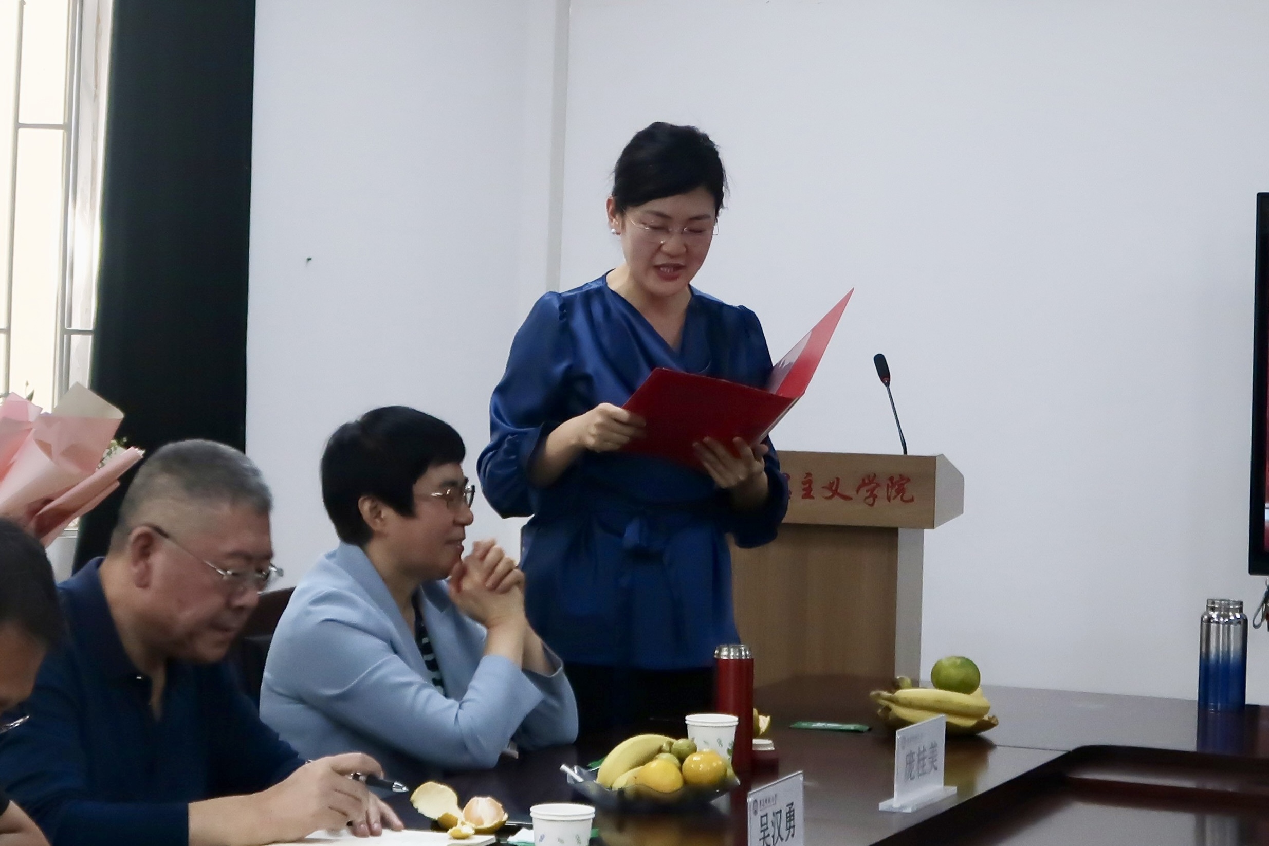 儀式伊始,劉寶福老師發(fā)表致辭,并介紹參加榮休儀式的領(lǐng)導(dǎo)和師生代表。他講述了龐桂美教授在馬克思主義學(xué)院發(fā)展中所做出的貢獻(xiàn),與師生們共同回憶了龐桂美教授為學(xué)校事業(yè)發(fā)展奉獻(xiàn)的歲月芳華以及走過(guò)的奮斗足跡。