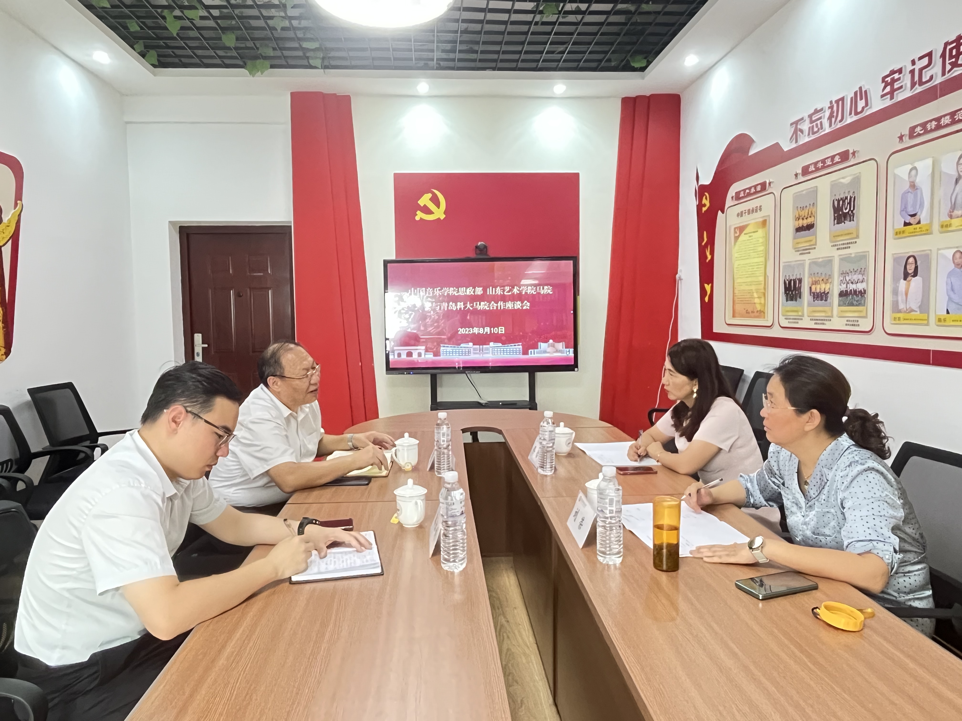 為深入推動(dòng)學(xué)習(xí)貫徹習(xí)近平新時(shí)代中國(guó)特色社會(huì)主義思想主題教育走深走實(shí),深化思政課教學(xué)改革,8月10日上午,中國(guó)音樂(lè)學(xué)院思政部、山東藝術(shù)學(xué)院馬克思主義學(xué)院與青島科技大學(xué)馬克思主義學(xué)院開(kāi)展合作座談會(huì)。中國(guó)音樂(lè)學(xué)院思政部主任佟怡、山東藝術(shù)學(xué)院馬克思主義學(xué)院黨總支書記劉榮受邀出席會(huì)議。青島科技大學(xué)馬克思主義學(xué)院院長(zhǎng)曹勝、副院長(zhǎng)郭江龍參加本次會(huì)議。曹勝主持會(huì)議。