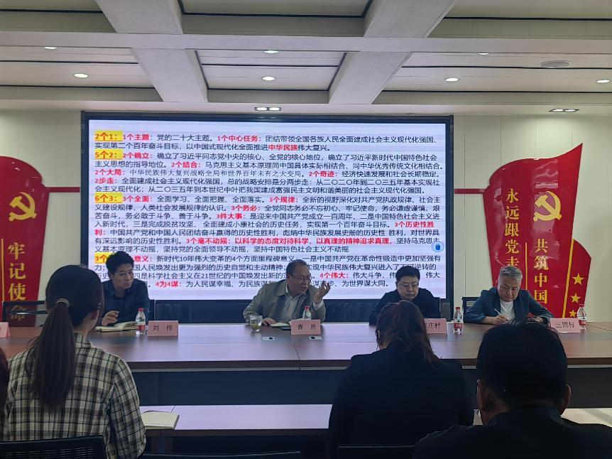 下午三時,劉偉介紹青島科技大學(xué)馬克思主義學(xué)院、青島科技大學(xué)德州融合創(chuàng)新發(fā)展中心基本情況。曹勝針對鄉(xiāng)村振興方面對二十大精神進(jìn)行宣講。曹勝院長用通俗易懂的語言,生動活潑的比喻形式將黨的二十大精神說明白,講透徹,守正創(chuàng)新在提高,鄉(xiāng)村振興全覆蓋。