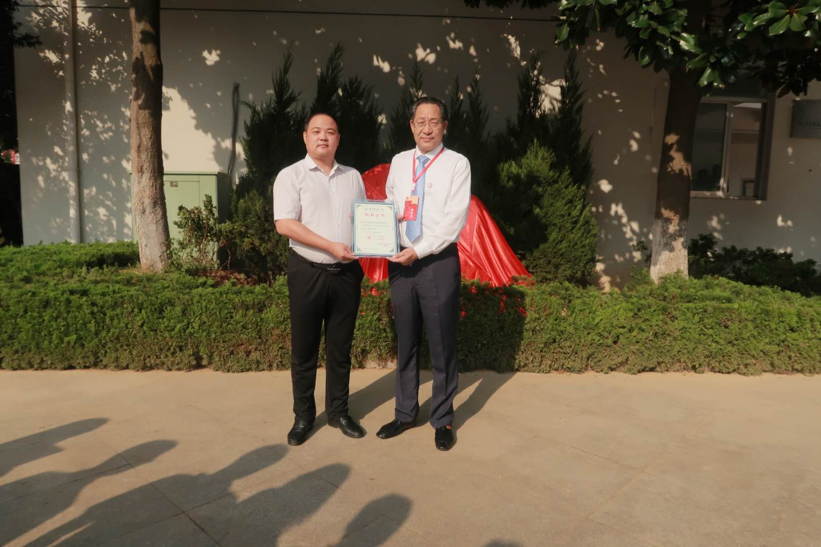 青島科技大學黨委副書記張淑華,黨委常委、副校長韋殿華,山東城際軌道交通科技股份有限公司總經(jīng)理張勇,泗水縣委常委、組織部長、青島科技大學校友秦明共同為“鑄魂”校園景觀石揭幕。