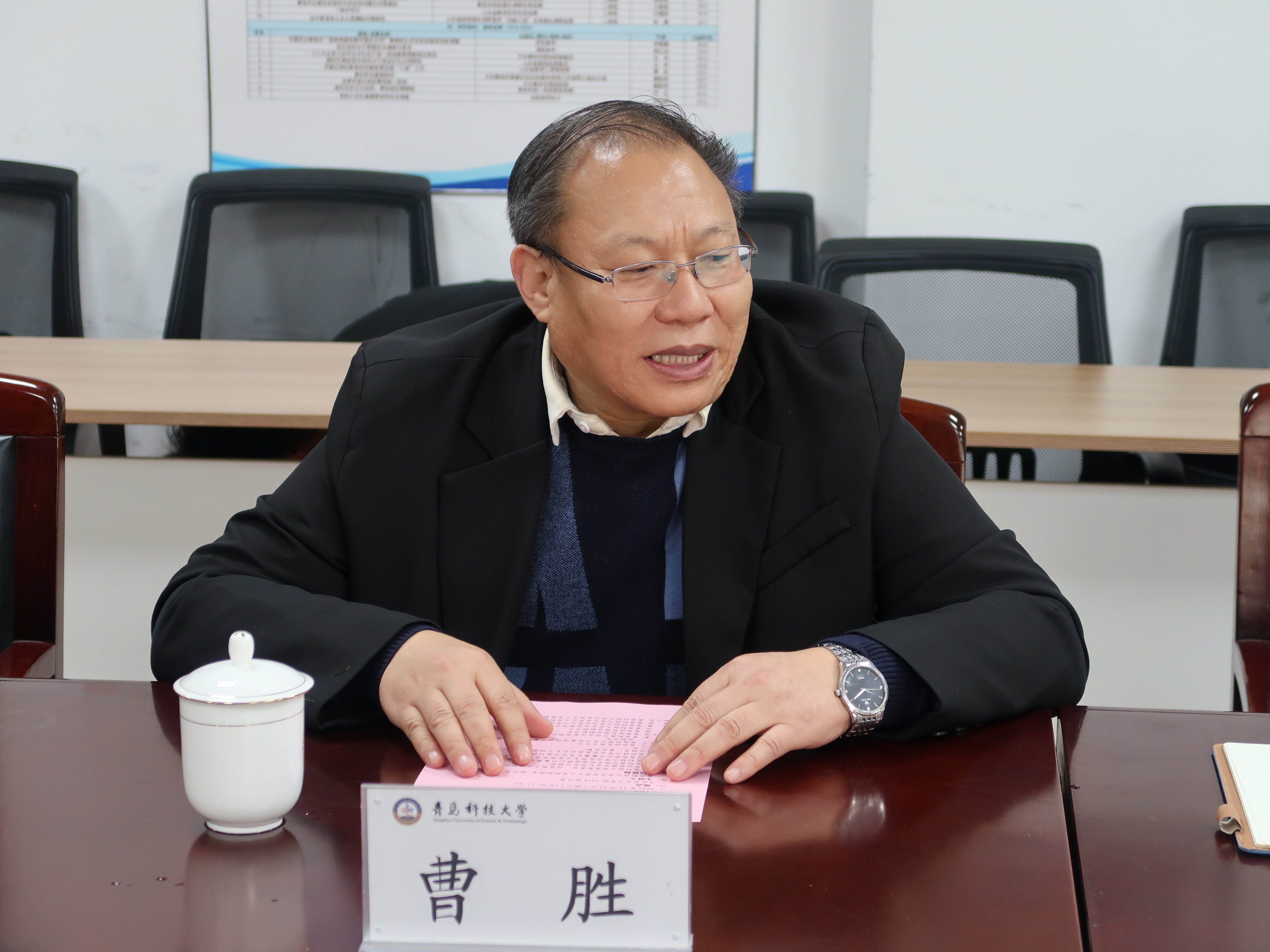 曹勝在致辭中首先向青島臨邑商會(huì)、青島凱美爾飲水設(shè)備有限公司表示感謝并介紹了學(xué)院基本情況。他表示,青島臨邑商會(huì)作為一個(gè)極具社會(huì)責(zé)任感的社團(tuán)組織,帶動(dòng)了一大批企業(yè)家在為經(jīng)濟(jì)發(fā)展作貢獻(xiàn)的同時(shí)積極地開(kāi)展公益事業(yè),體現(xiàn)出商會(huì)企業(yè)家們深入學(xué)習(xí)貫徹了二十屆三中全會(huì)精神,助力凝聚中國(guó)式現(xiàn)代化的磅礴之力。此次捐贈(zèng)之舉不僅能為青島科技大學(xué)的師生們營(yíng)造更為便捷的教學(xué)與學(xué)習(xí)環(huán)境,更是對(duì)馬克思主義學(xué)院教育工作的有力支持。希望未來(lái)能與青島臨邑商會(huì)、青島凱美爾飲水設(shè)備有限公司有更多交流機(jī)會(huì),開(kāi)展更多有效合作。