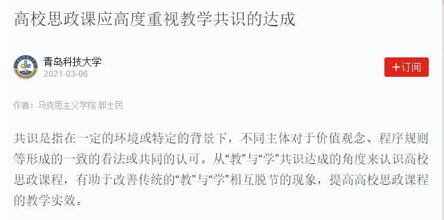 共識是指在一定的環(huán)境或特定的背景下,不同主體對于價值觀念、程序規(guī)則等形成的一致的看法或共同的認(rèn)可。從“教”與“學(xué)”共識達成的角度來認(rèn)識高校思政課程,有助于改善傳統(tǒng)的“教”與“學(xué)”相互脫節(jié)的現(xiàn)象,提高高校思政課程的教學(xué)實效。
