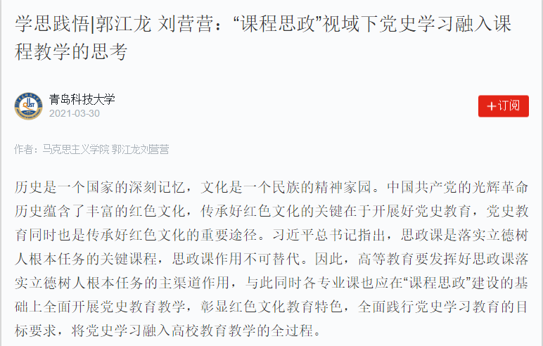 第三,營造優(yōu)良的的黨史學(xué)習(xí)教育氛圍,通過黨史學(xué)習(xí)宣傳促進(jìn)課程教學(xué)。在包括微信、抖音、微博、網(wǎng)站等媒體平臺(tái)開設(shè)黨史學(xué)習(xí)專欄,定期推送黨史學(xué)習(xí)知識(shí)。與此同時(shí),充分利用好校園宣傳欄,定期更新黨史學(xué)習(xí)資源,創(chuàng)造黨史學(xué)習(xí)教育的良好環(huán)境。習(xí)近平總書記指出,多了解中國革命、建設(shè)、改革的歷史知識(shí),多向英雄模范人物學(xué)習(xí),熱愛黨、熱愛祖國、熱愛人民,用實(shí)際行動(dòng)把紅色基因一代代傳下去。因此,良好的環(huán)境是黨史教育教學(xué)的重要保障,通過營造良好的校園文化氛圍,可潛移默化地提升學(xué)生對(duì)于黨史學(xué)習(xí)的主動(dòng)性、積極性和自覺性。