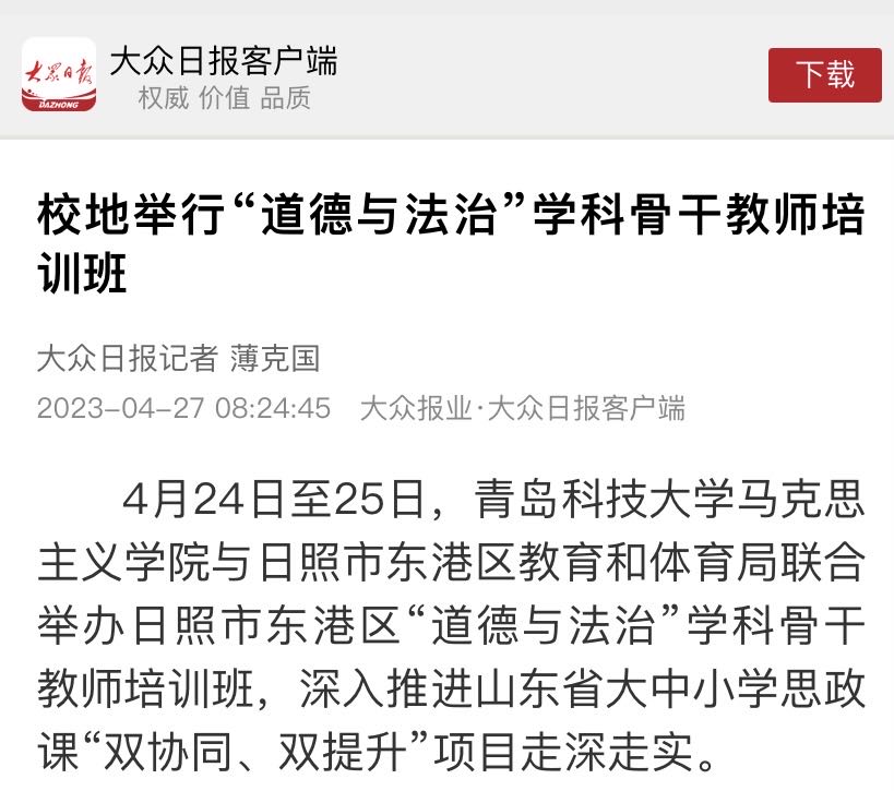 4月24日至25日,青島科技大學(xué)馬克思主義學(xué)院與日照市東港區(qū)教育和體育局聯(lián)合舉辦日照市東港區(qū)“道德與法治”學(xué)科骨干教師培訓(xùn)班,深入推進(jìn)山東省大中小學(xué)思政課“雙協(xié)同、雙提升”項(xiàng)目走深走實(shí)。