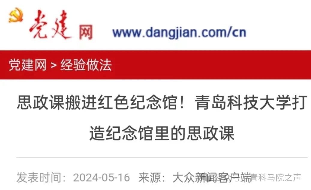 青島科技大學(xué)把思政小課堂和社會大課堂結(jié)合起來,全力打造“紀(jì)念館里的思政課”“行走的思政課”,充分發(fā)揮山東省重點馬克思主義學(xué)院的優(yōu)勢,以中國特色社會主義取得的舉世矚目成就為內(nèi)容支撐,以中華優(yōu)秀傳統(tǒng)文化、革命文化和社會主義先進文化為力量根基,守正創(chuàng)新推動思政課建設(shè)內(nèi)涵式發(fā)展,不斷提高思政課的針對性和吸引力,不斷開創(chuàng)新時代思政教育新局面,努力培養(yǎng)更多讓黨放心、愛國奉獻、擔(dān)當(dāng)民族復(fù)興重任的時代新人。