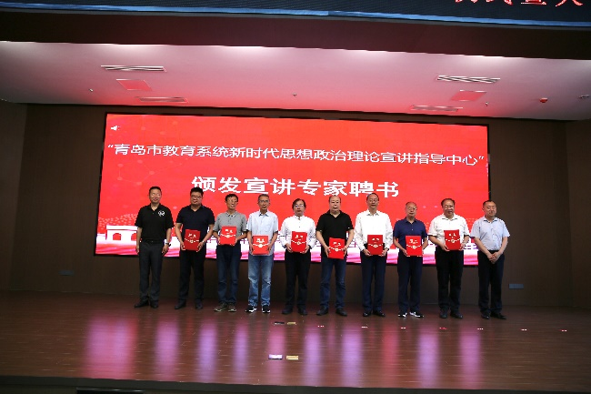 儀式上,李勇、李曉元共同為“青島市教育系統(tǒng)新時(shí)代思想政治理論宣講指導(dǎo)中心”揭牌。青島市教育局思政處處長(zhǎng)趙俊杰和青島市委宣講團(tuán)宣教處處長(zhǎng)黃新光為曹勝、蔡勤禹、張瑞濤、厲盡國(guó)、尉利工、徐波、華章琳、賈樂(lè)芳等首批8位專(zhuān)家頒發(fā)青島市教育系統(tǒng)新時(shí)代思想政治理論“宣講專(zhuān)家”聘書(shū)。