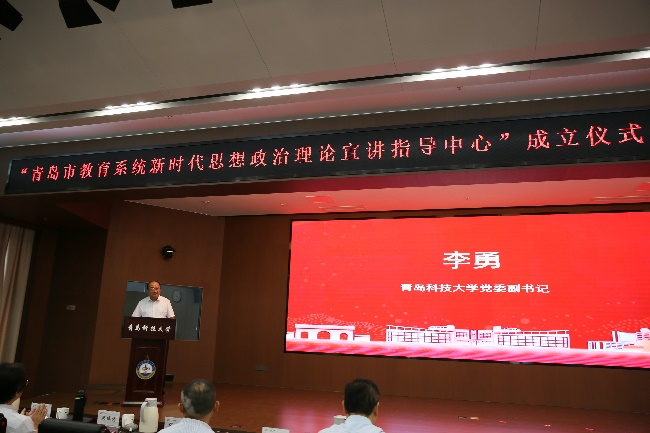 李勇在致辭中對(duì)青島市委教育工委(市教育局)長(zhǎng)期以來(lái)對(duì)學(xué)校發(fā)展給予的支持和幫助表示衷心感謝,向與會(huì)嘉賓表示熱烈歡迎,向本次活動(dòng)的舉辦表示祝賀。他指出,學(xué)校黨委牢記“為黨育人、為國(guó)育才”的初心使命,堅(jiān)持不懈用習(xí)近平新時(shí)代中國(guó)特色社會(huì)主義思想凝心鑄魂,堅(jiān)持思政課建設(shè)向改革創(chuàng)新要活力的實(shí)踐導(dǎo)向,堅(jiān)持思政課建設(shè)與黨的創(chuàng)新理論武裝同步推進(jìn),新時(shí)代思想政治理論宣講指導(dǎo)中心的成立,是全面推進(jìn)“大思政課”建設(shè)的又一生動(dòng)實(shí)踐,是深化新時(shí)代學(xué)校思想政治理論課改革創(chuàng)新的又一鮮活載體,為推進(jìn)學(xué)校思想政治工作形式創(chuàng)新、增強(qiáng)思想政治教育實(shí)效性提供了新支撐、注入了新活力,對(duì)推動(dòng)黨的創(chuàng)新理論真正“飛入尋常百姓家”,引導(dǎo)師生筑牢信仰之基、補(bǔ)足精神之鈣、把穩(wěn)思想之舵具有重要意義。