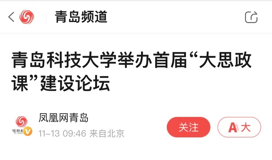 據(jù)悉,青島科技大學(xué)按照山東省教育廳的要求,充分發(fā)揮山東省重點(diǎn)馬克思主義學(xué)院的優(yōu)勢(shì),以打造思政課金課為一體,以建設(shè)大思政課和大中小學(xué)思政課一體化建設(shè)改革創(chuàng)新為兩翼,守正創(chuàng)新推進(jìn)思政課內(nèi)涵式發(fā)展,不斷開(kāi)創(chuàng)新時(shí)代思政教育新局面,努力培養(yǎng)更多讓黨放心、愛(ài)國(guó)奉獻(xiàn)、擔(dān)當(dāng)民族復(fù)興重任的時(shí)代新人。