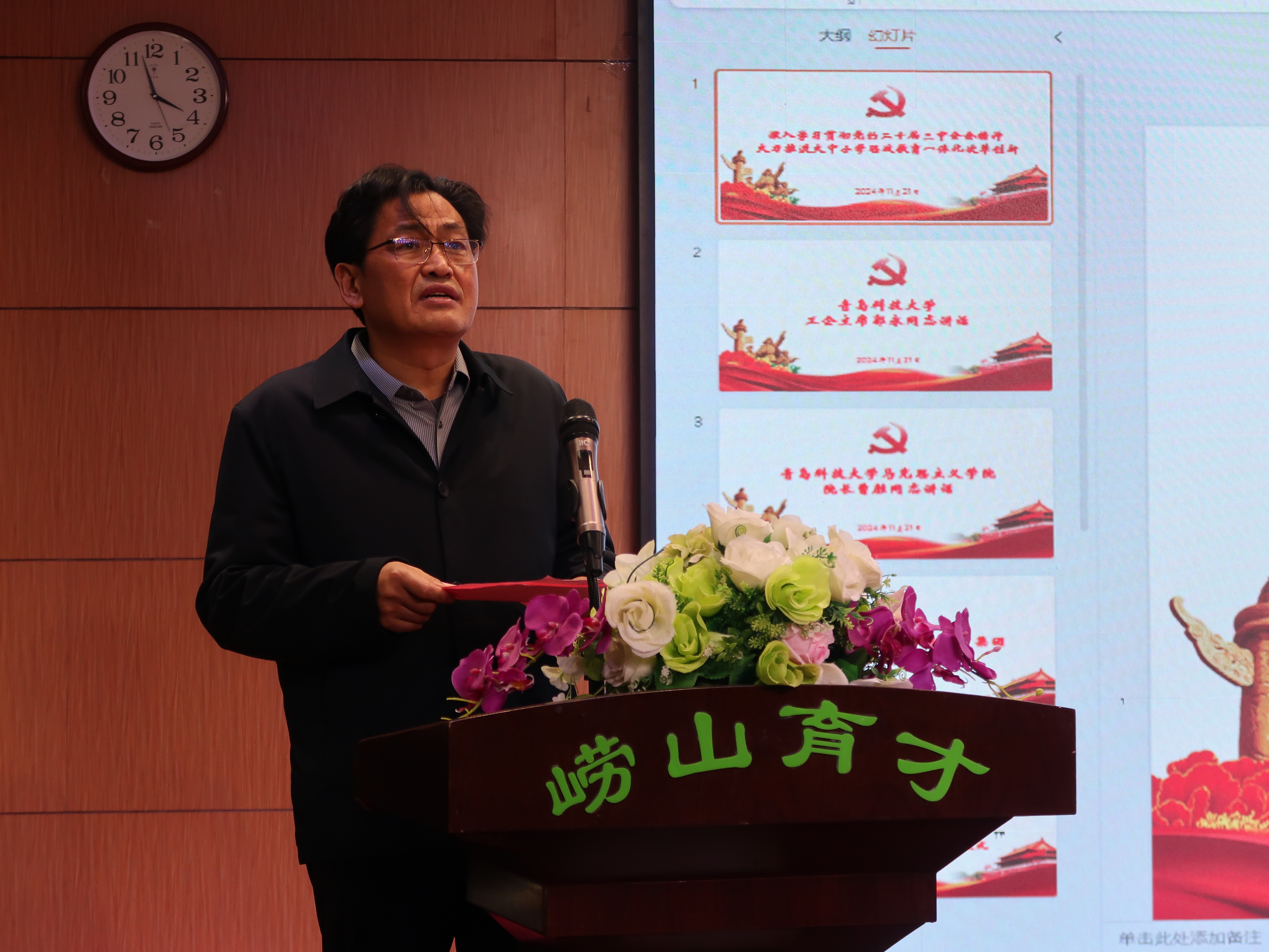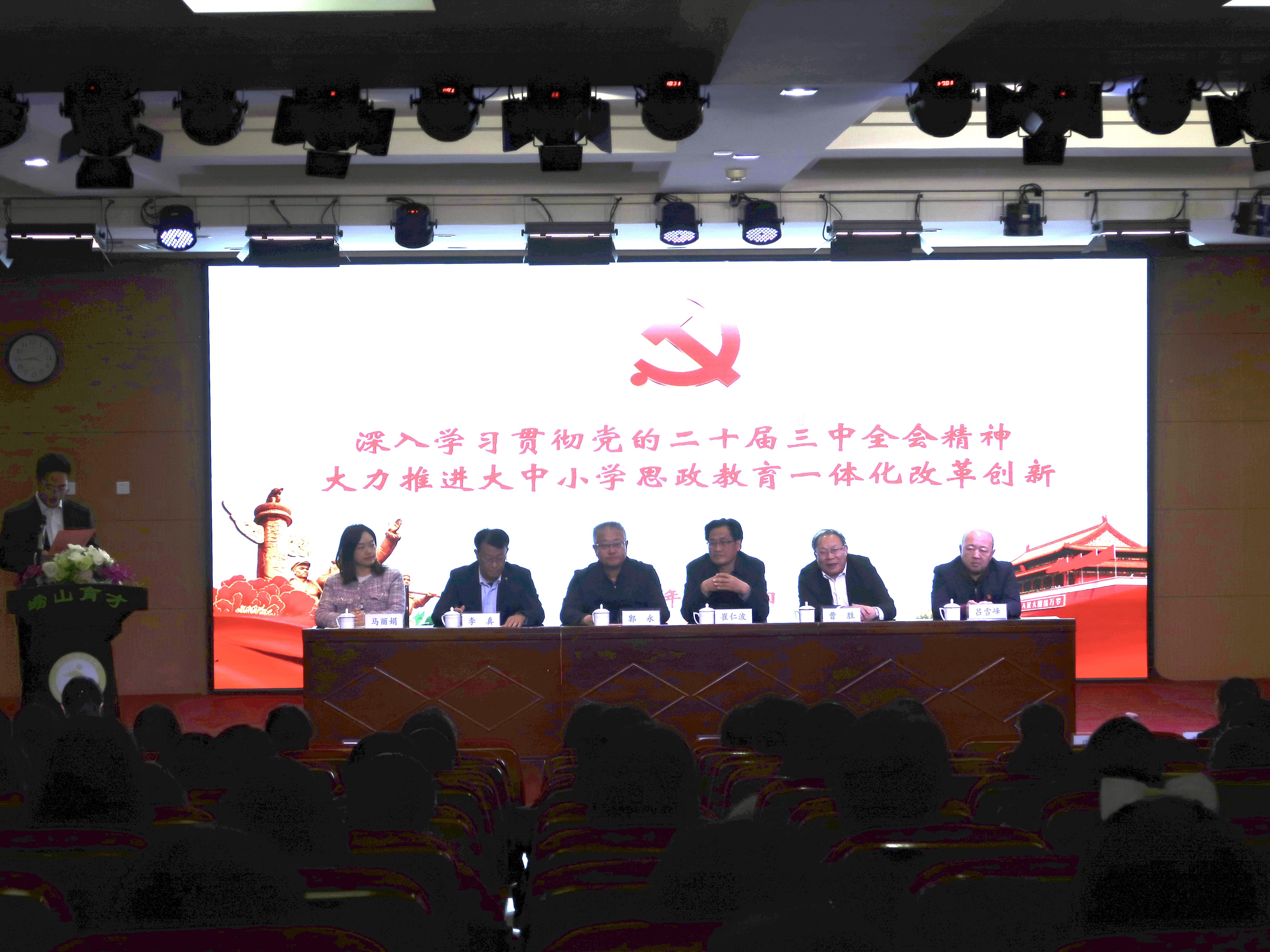 為深入學(xué)習(xí)貫徹黨的二十屆三中全會精神和全國教育大會精神,統(tǒng)籌推進大中小學(xué)思政課一體化建設(shè)改革創(chuàng)新,11月21日,青島科技大學(xué)馬克思主義學(xué)院與嶗山區(qū)育才學(xué)校開展大中小學(xué)思政課一體化建設(shè)改革創(chuàng)新主題活動。青島科技大學(xué)紀委委員、工會主席郭永,青島科技大學(xué)馬克思主義學(xué)院黨總支書記李真,青島科技大學(xué)黨委委員、院長曹勝,馬克思主義學(xué)院思想道德與法治教研室黨支部書記馬麗娟,嶗山區(qū)育才學(xué)校教育集團校長崔仁波、初中部教學(xué)副校長李紅、小學(xué)部教學(xué)副校長劉燕、工會主席呂雪峰出席本次活動,嶗山區(qū)育才學(xué)校中級領(lǐng)導(dǎo)干部、思政教師班主任和各學(xué)科教研組長代表等70余人參加本次活動。