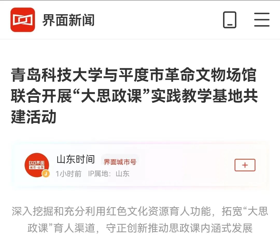 據(jù)悉,青島科技大學(xué)深入貫徹習(xí)近平總書記關(guān)于學(xué)校思政課建設(shè)的重要指示,充分發(fā)揮山東省重點(diǎn)馬克思主義學(xué)院優(yōu)勢(shì),依托本地紅色資源全力打造“紀(jì)念館中的思政課”,不斷拓寬思政課堂教學(xué)邊界,積極推進(jìn)“大思政課”實(shí)踐教學(xué),增強(qiáng)思政課程針對(duì)性與親和力,守正創(chuàng)新推動(dòng)思政課建設(shè)內(nèi)涵式發(fā)展。同時(shí)馬克思主義學(xué)院也充分發(fā)揮牽頭引領(lǐng)作用,注重推動(dòng)革命文物資源與大中小學(xué)思政教育一體化建設(shè)融合發(fā)展,使紅色文化與思政課教學(xué)體系更加融通,擴(kuò)大“大思政課”建設(shè)的影響力和示范性。