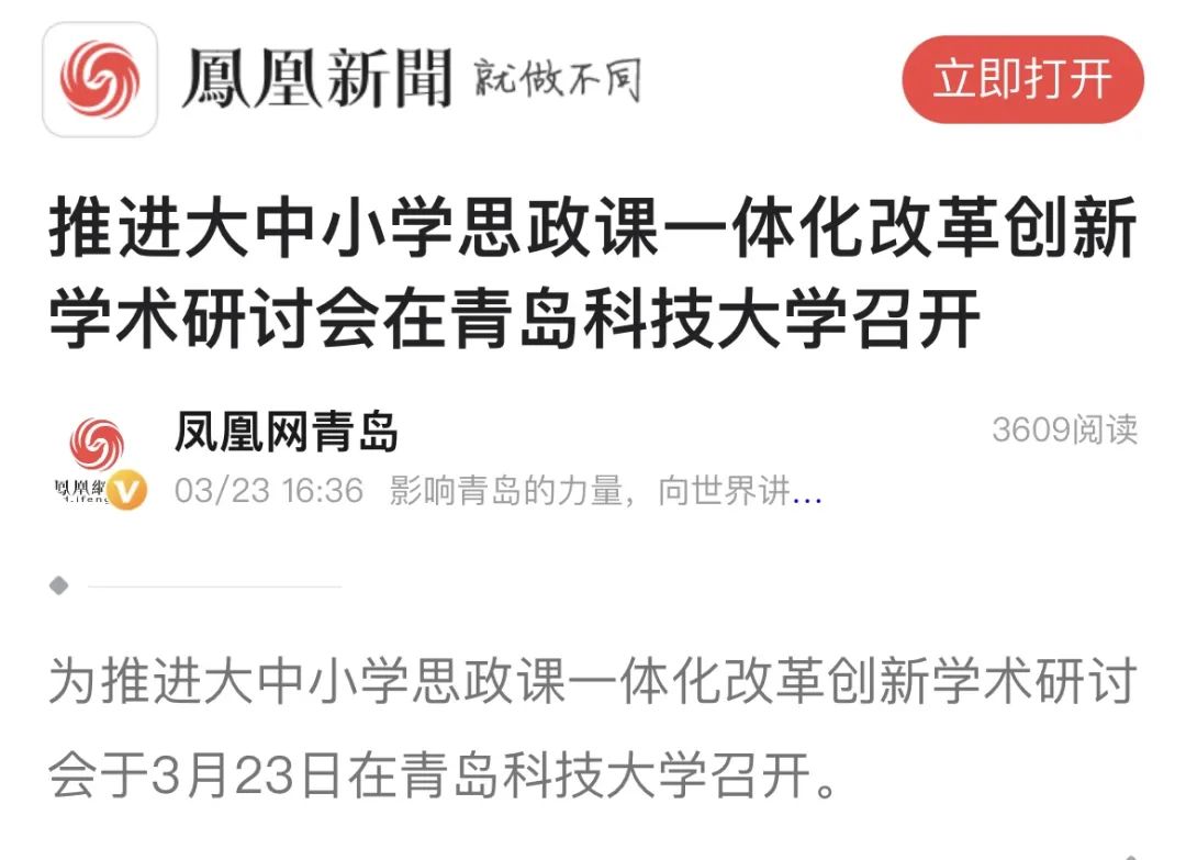 為深入學(xué)習(xí)貫徹黨的二十大、二十屆二中、三中全會(huì)精神和全國(guó)兩會(huì)精神,落實(shí)《教育強(qiáng)國(guó)建設(shè)規(guī)劃綱要(2024-2035年)》《山東省大中小學(xué)思政課一體化建設(shè)實(shí)施方案》和山東省大中小學(xué)思政課一體化建設(shè)專題推進(jìn)會(huì)議精神,完善立德樹人機(jī)制,推進(jìn)大中小學(xué)思政課一體化改革創(chuàng)新,充分發(fā)揮思政課在立德樹人中的關(guān)鍵課程作用,守正創(chuàng)新推動(dòng)思政課內(nèi)涵式發(fā)展,不斷提高思政課的針對(duì)性和吸引力,不斷開創(chuàng)新時(shí)代思想政治教育新局面,推進(jìn)大中小學(xué)思政課一體化改革創(chuàng)新學(xué)術(shù)研討會(huì)于3月23日在青島科技大學(xué)召開。會(huì)議由山東省大中小學(xué)思政課一體化建設(shè)指導(dǎo)中心、青島科技大學(xué)、青島二中聯(lián)合主辦,青島科技大學(xué)馬克思主義學(xué)院承辦。
