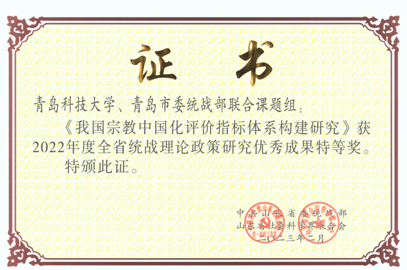 2022年度山東省統(tǒng)戰(zhàn)理論政策研究優(yōu)秀成果特等獎:我國宗教中國化評價指標(biāo)體系構(gòu)建研究