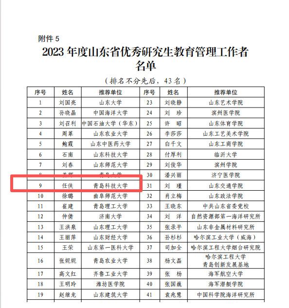 山東省優(yōu)秀研究生教育工作管理者:任俠