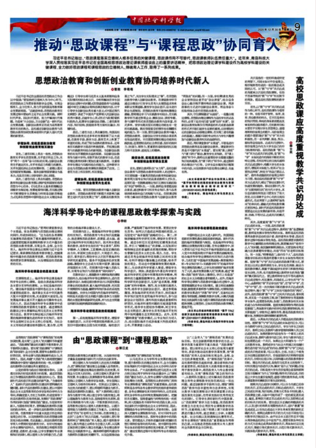 《中國社會科學(xué)報》:海洋科學(xué)導(dǎo)論中的課程思政課教學(xué)探索與實(shí)踐